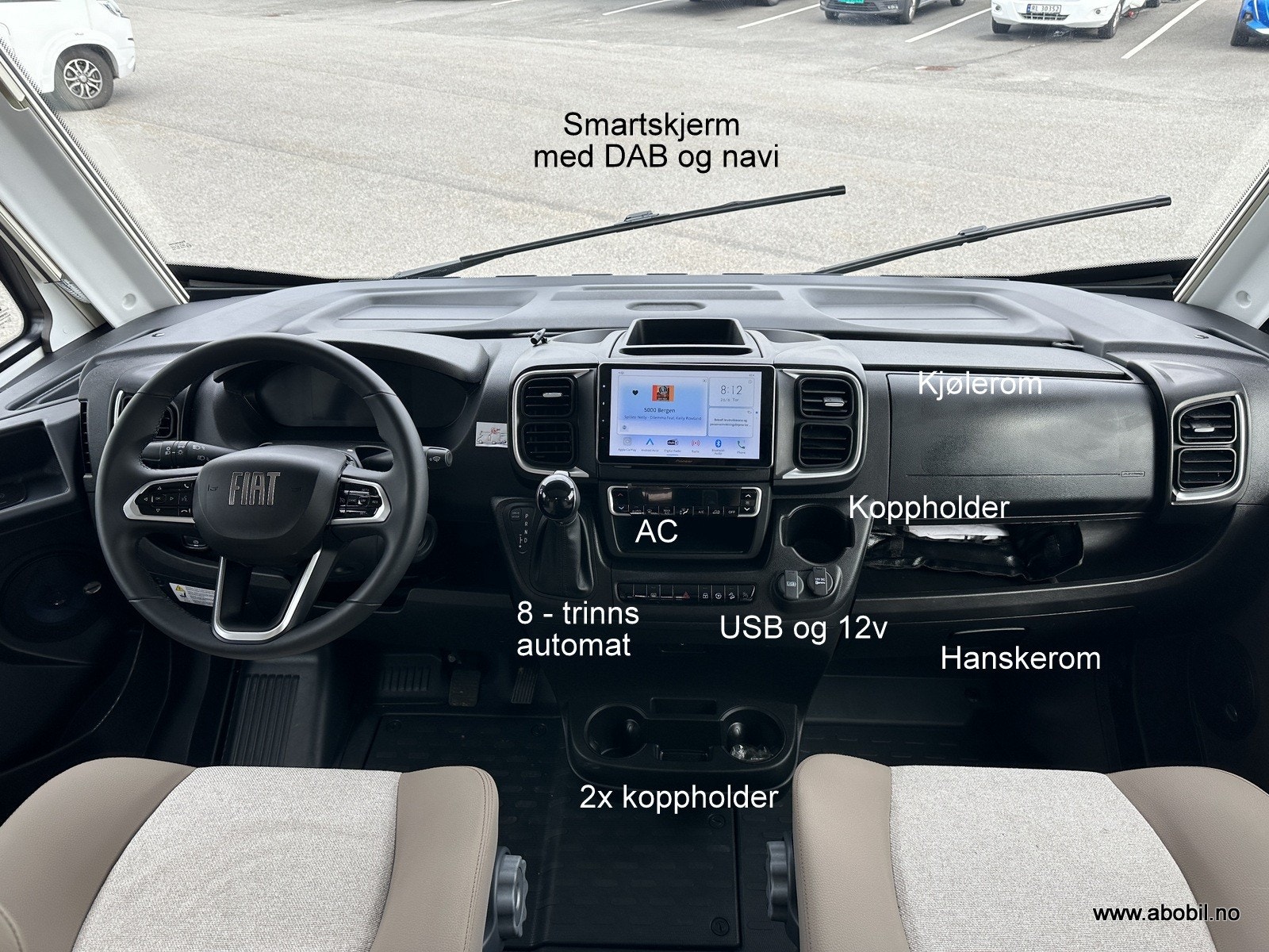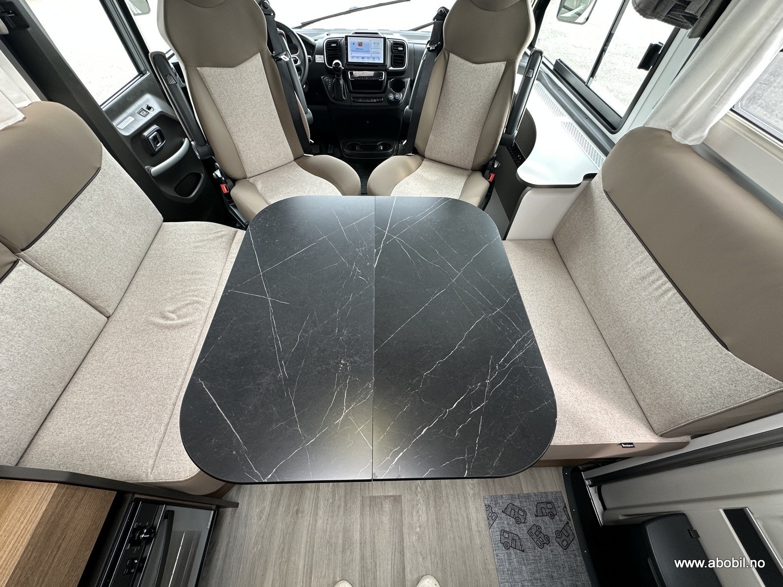 I førerdel finner du Aircondition, koppholdere, USB, DAB+ stereoanlegg med høyttalere også bak, ryggekamera og multifunksjonsratt. Svingbare og regulerbare pilotstoler med armlener og regulerbart ratt sørger for førsteklasses komfort. Sentrallås (inkludert bodelsdør).