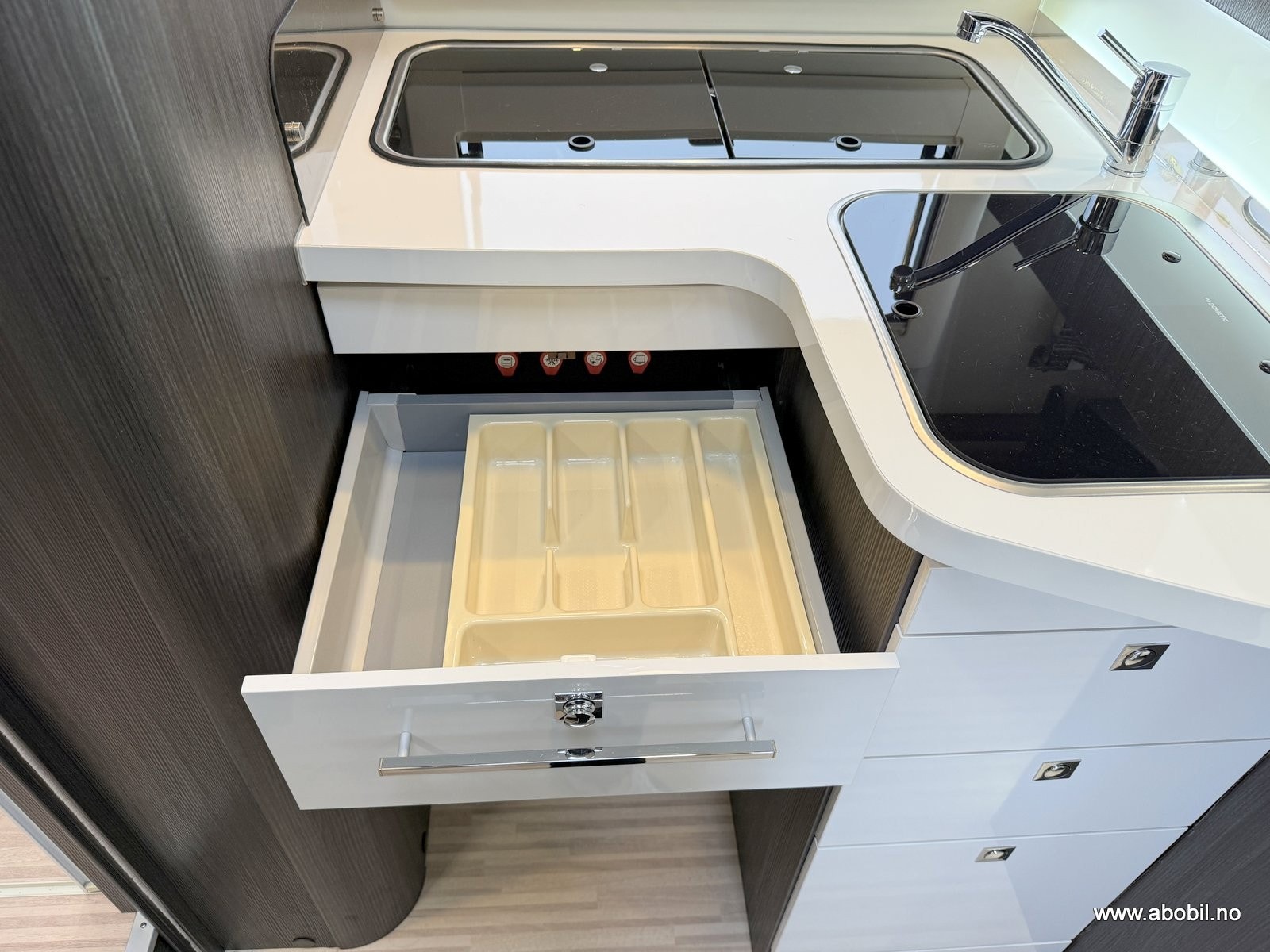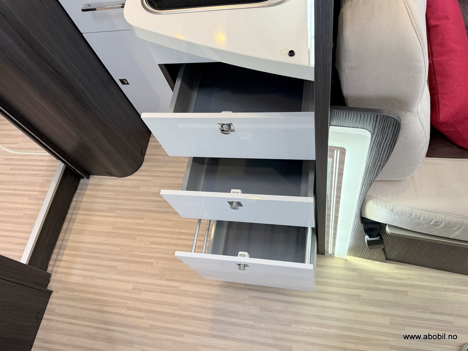 • Solcellepanel Aircondition bildel 150hk / 380 nm Gulv teppe 16″ alu-felger Ryggekamera Komplett trefri konstruksjon DAB+ radio    Optimalt plassert varmesystem Markise og utelys