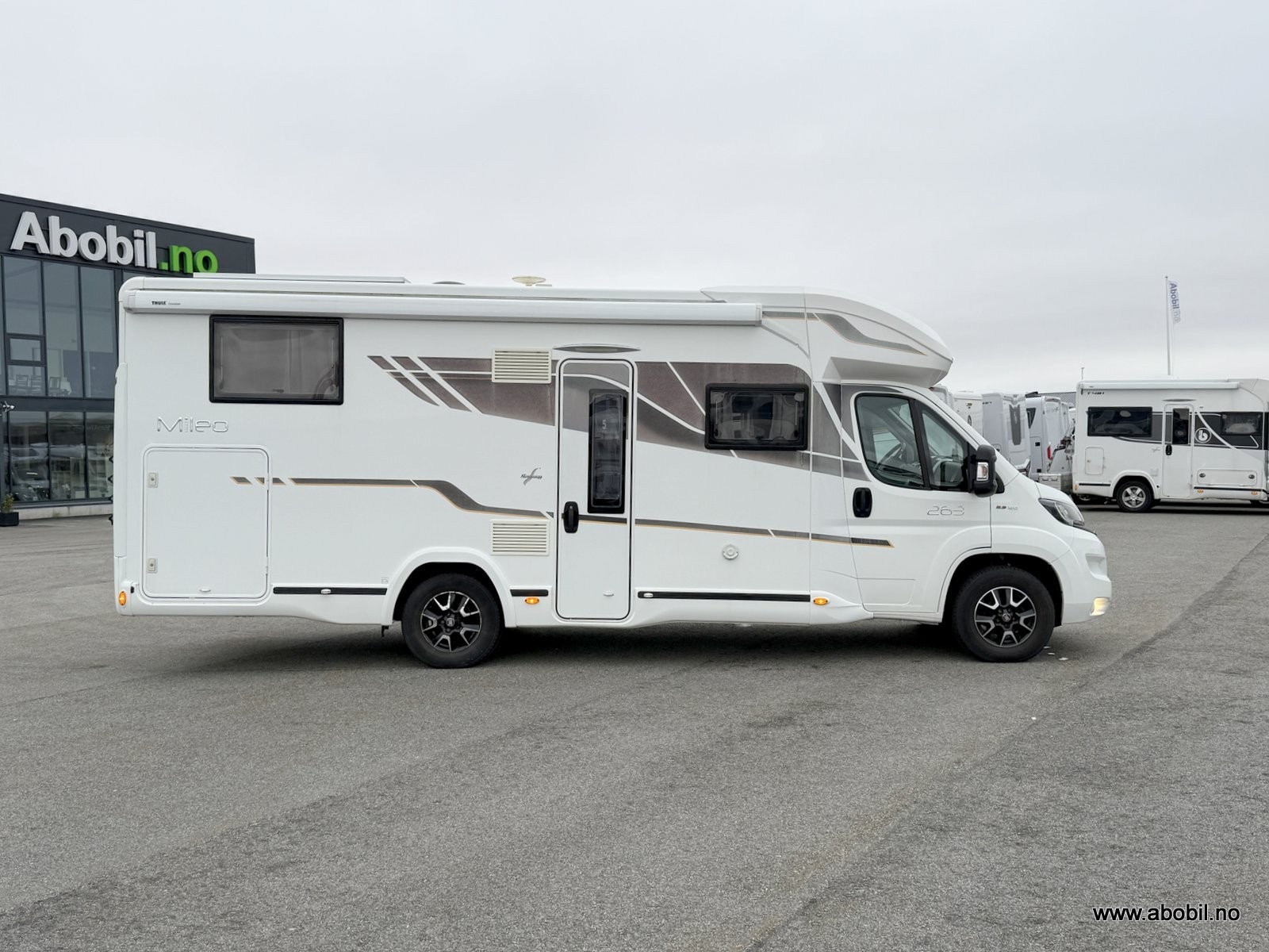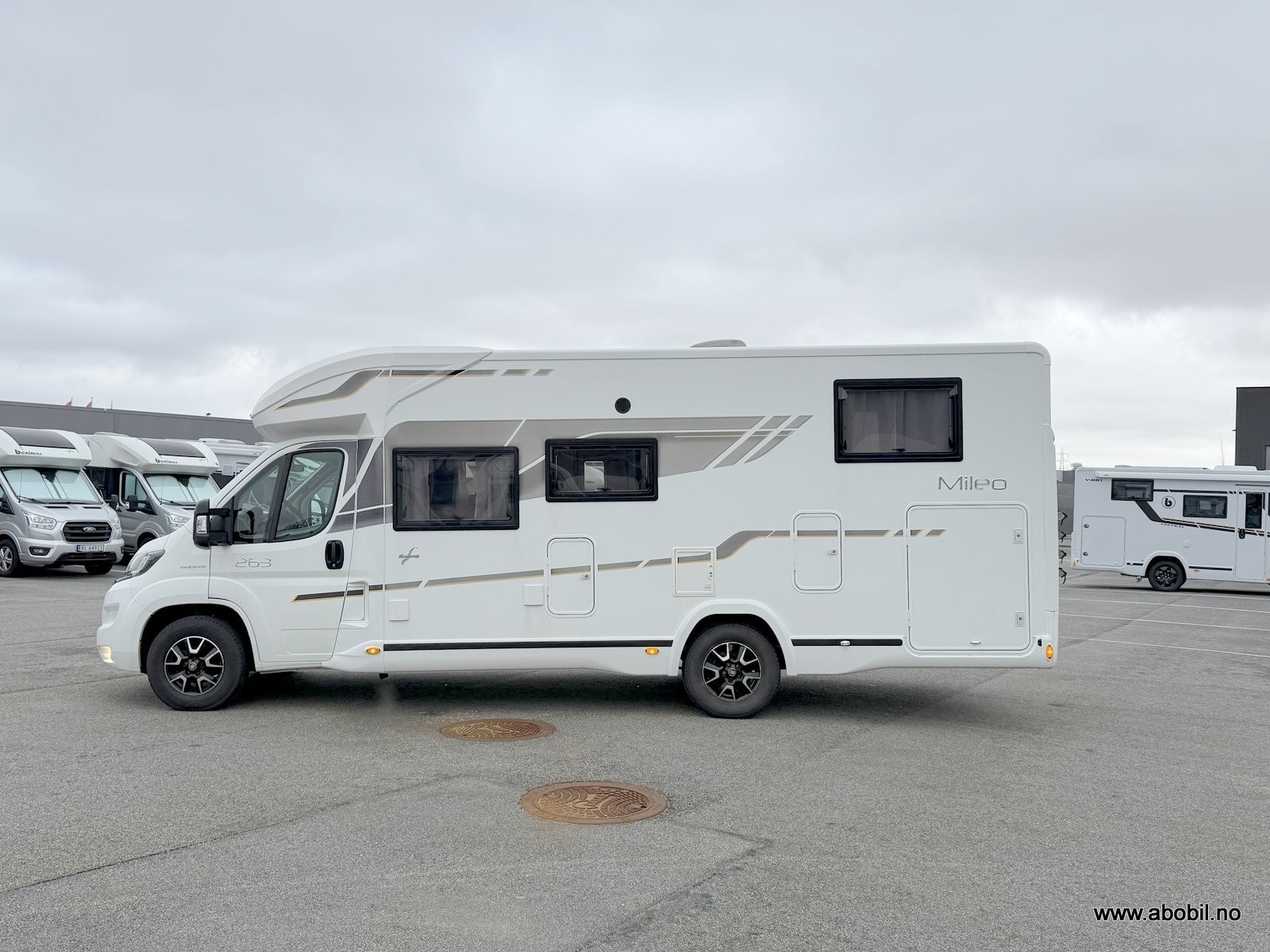 En av Benimars mest populære planløsninger! Benimar Mileo 263 – perfekt for både par og familie. Romslig soverom med enkeltsenger (kan gjøres om til dobbeltseng), stor senkeseng over salongen, separat dusj, stort kjøkken og romslig garasje. Utstyrt for fricamping med solcelle – klar for nye eventyr!