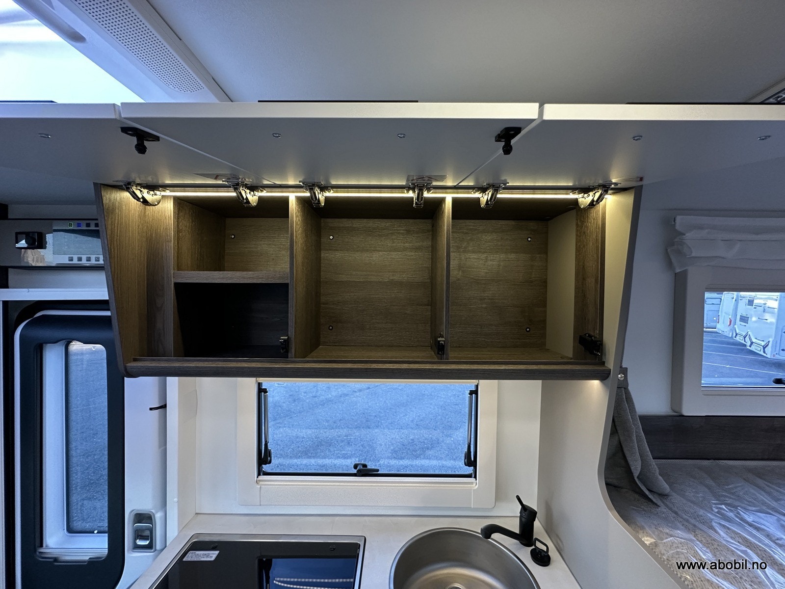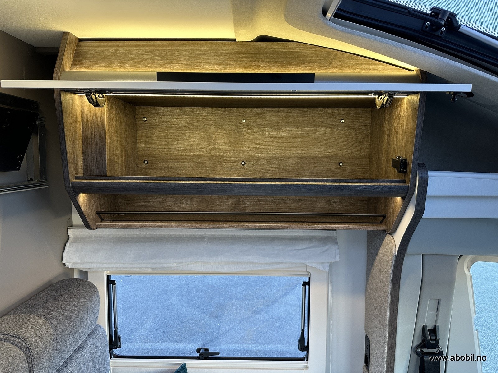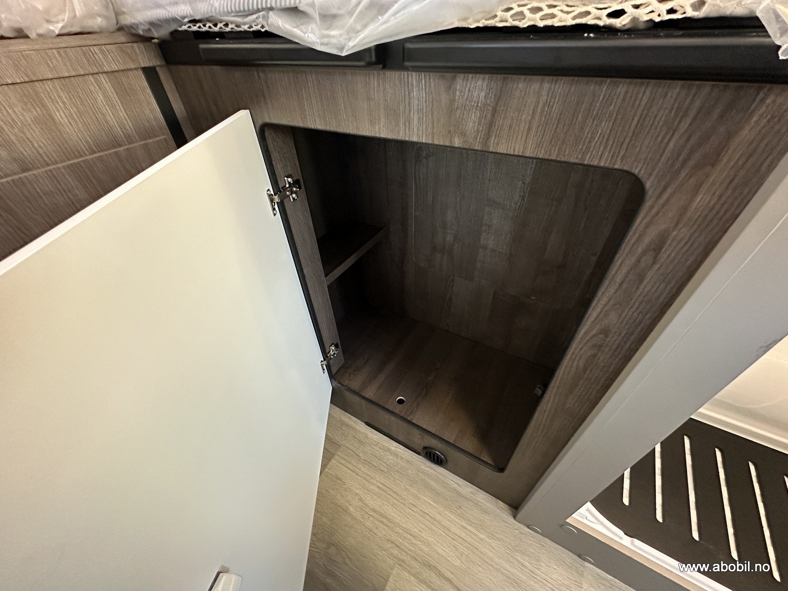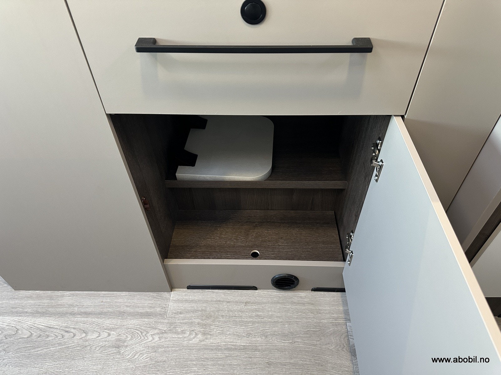 Rikelig med skapplass, smart lagring under sengen, og dedikert plass for gassflaske (1 stk).