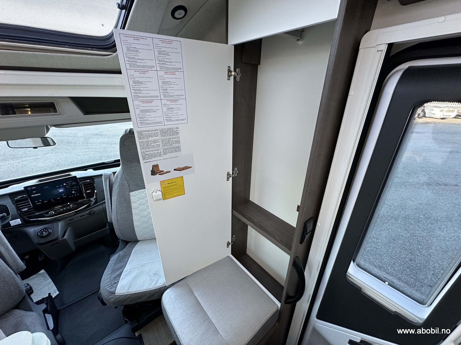 Utstyrt med DAB+ radio med stor touch-skjerm, ryggekamera, elektriske speil og vinduer, Bi-xenon kjørelys og fjernstyrt sentrallås også på bodelsdøren.