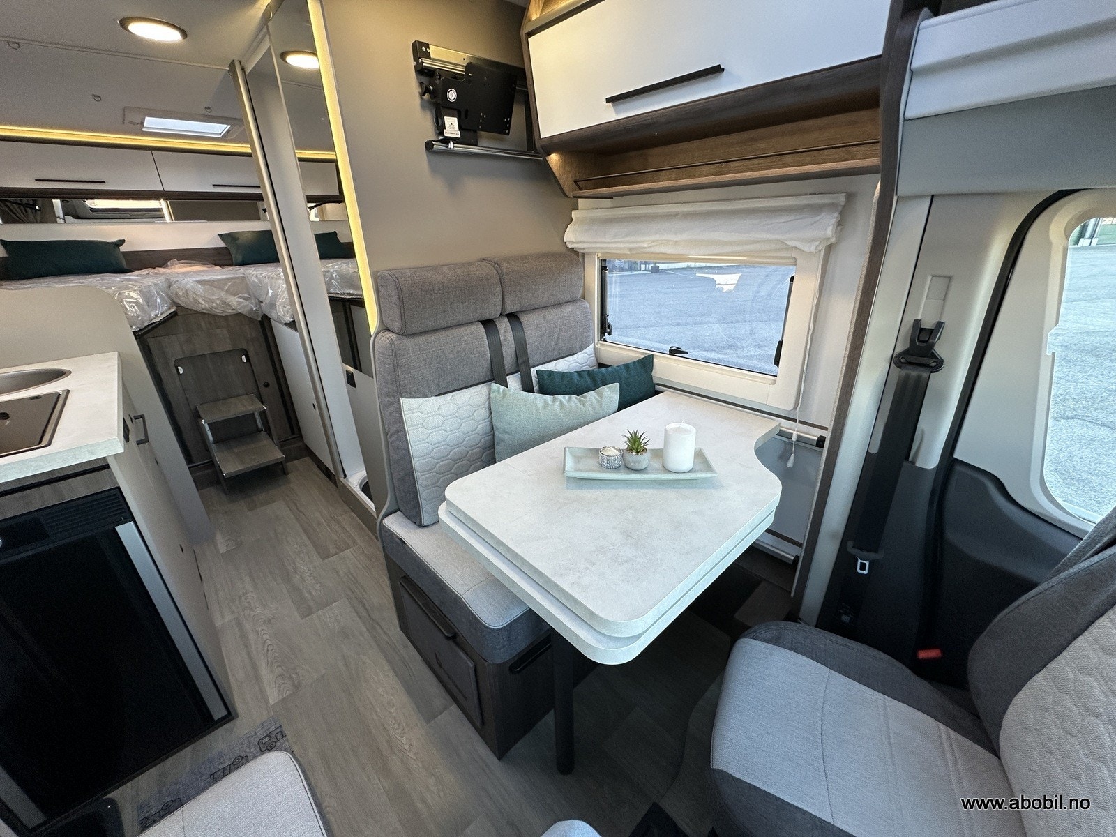 Dette er en 2026-modell med 8-trinns automatgir, 165HK og en svært gjennomført planløsning som gir deg følelsen av rom selv med kun 2,14 m bredde.