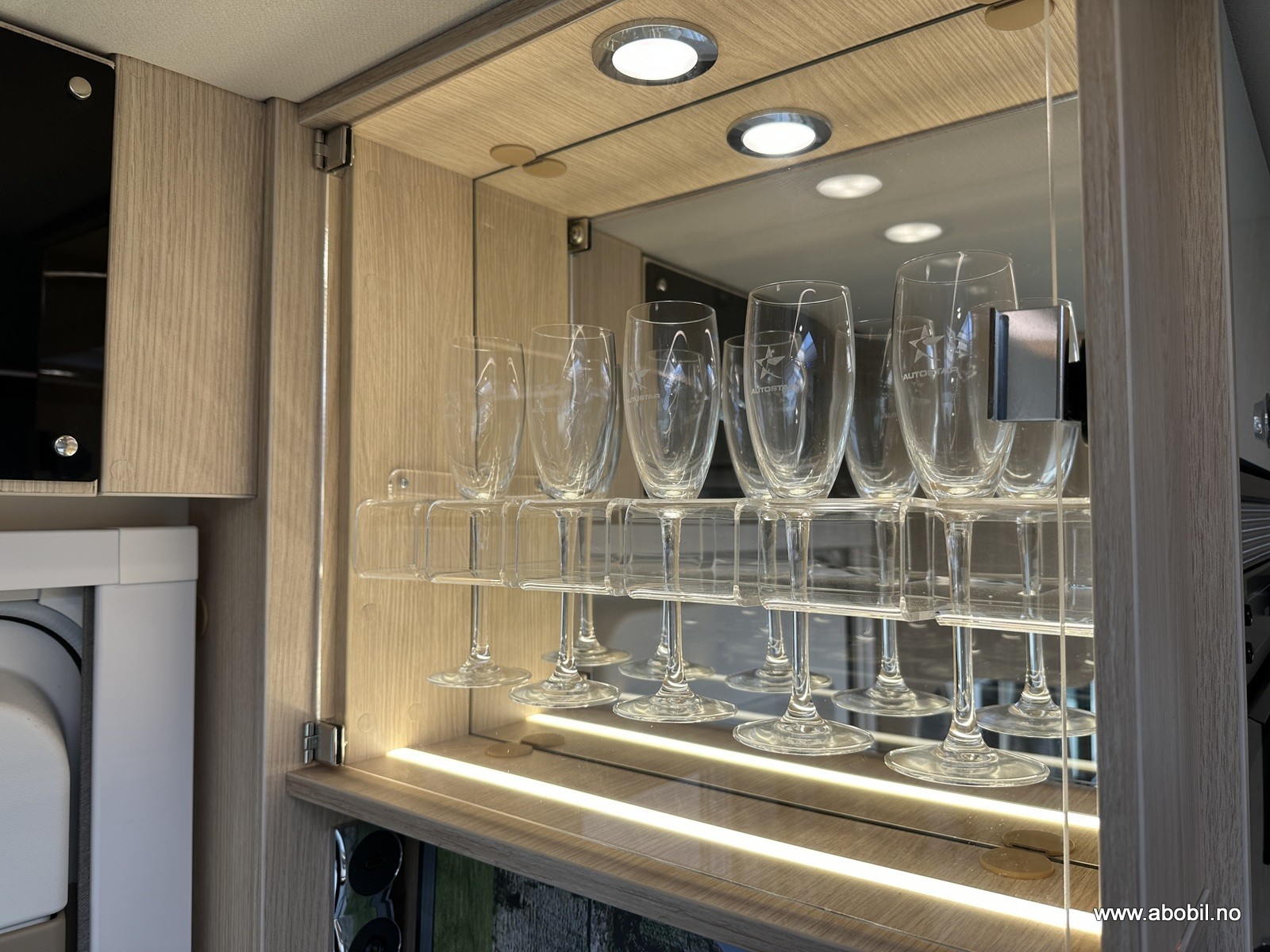 I salongen er det også stor, panorama takluke, masse LED-belysning,