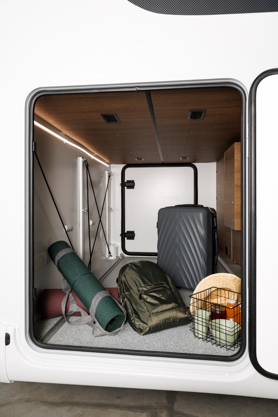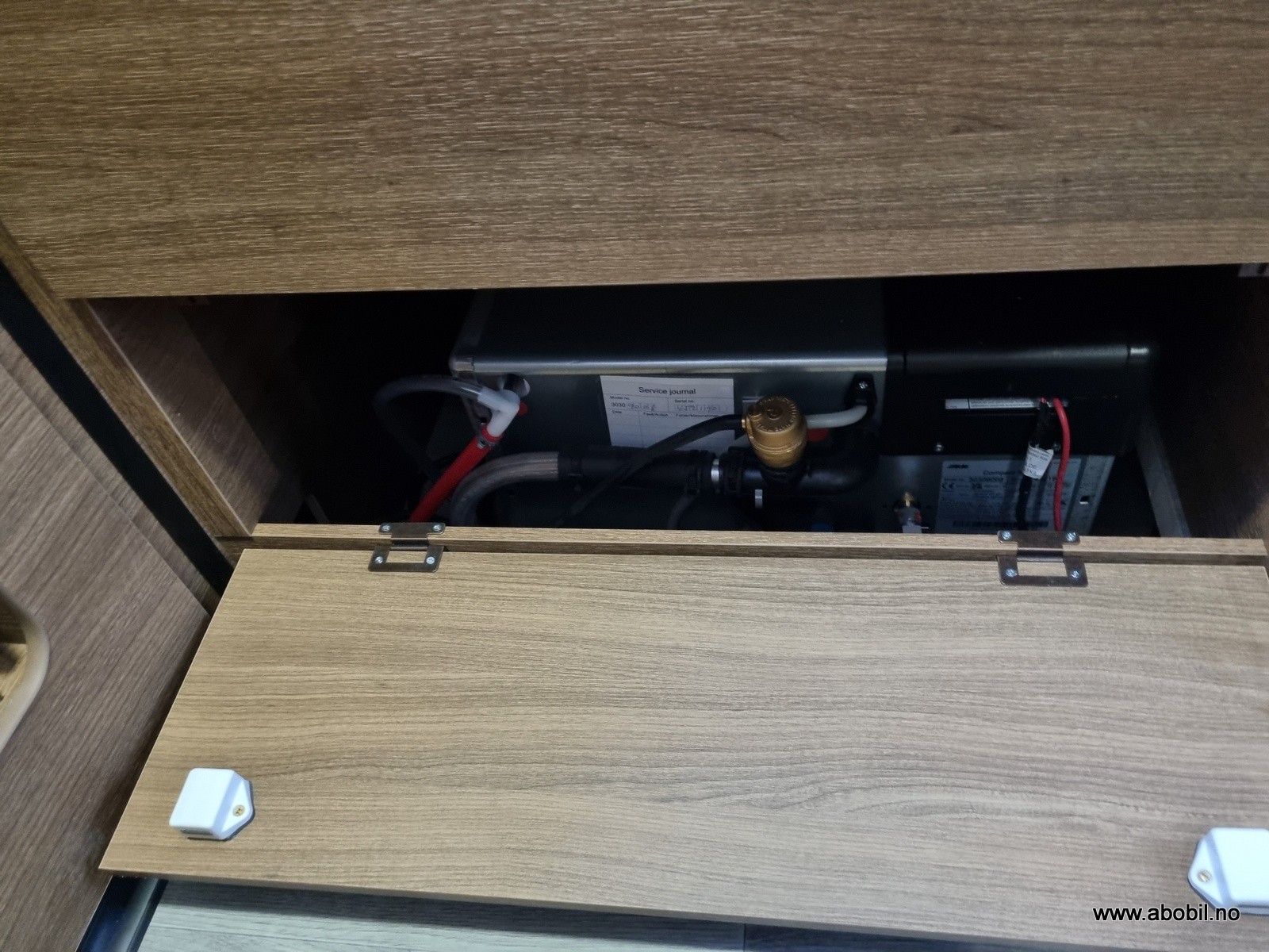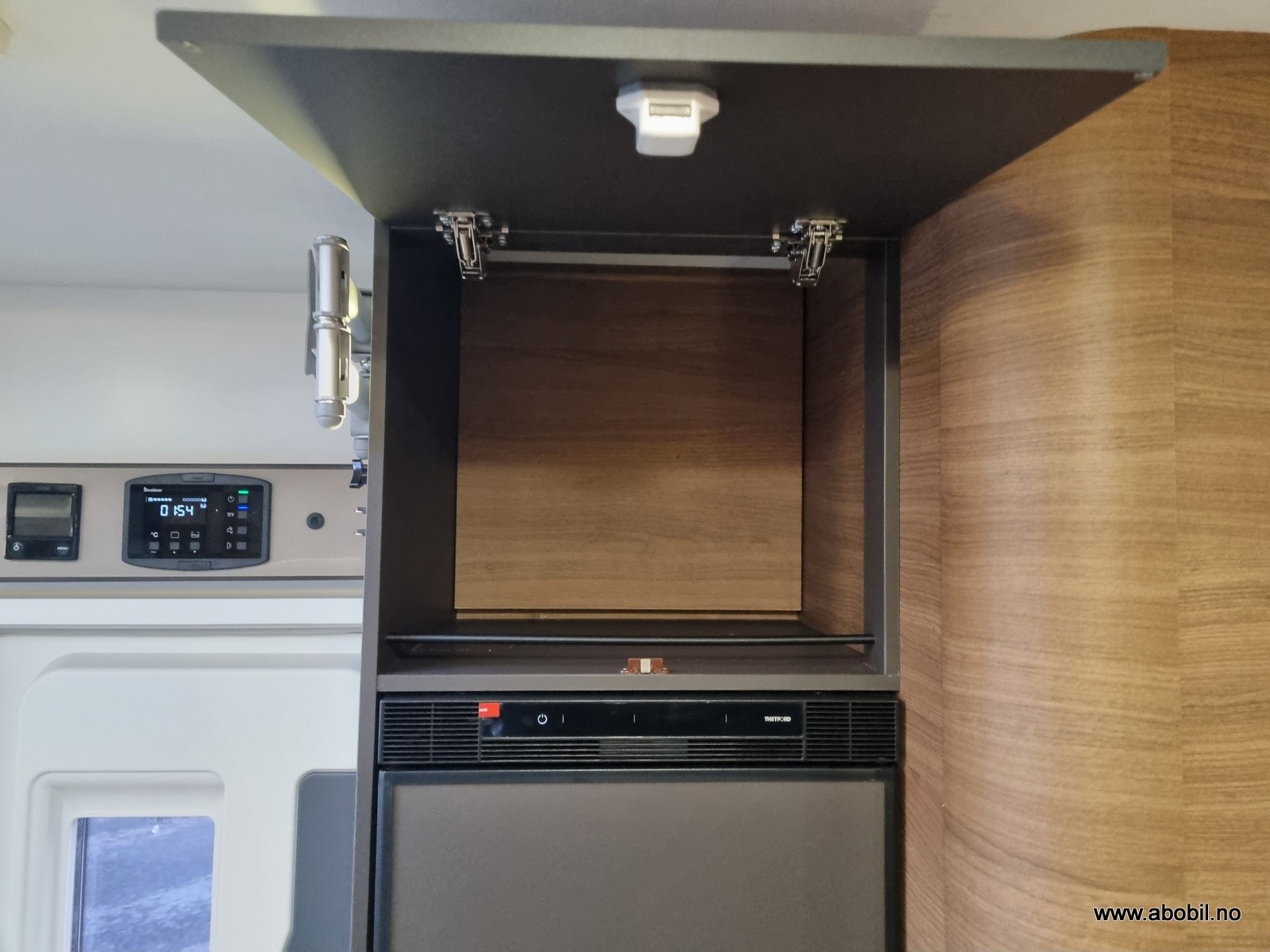 Energieffektiv LED-belysning er installert i hele bodelen – inkludert utvendig og i garasjen. Flere USB- og 230V-uttak gir enkel lading av utstyr og fleksibel bruk.