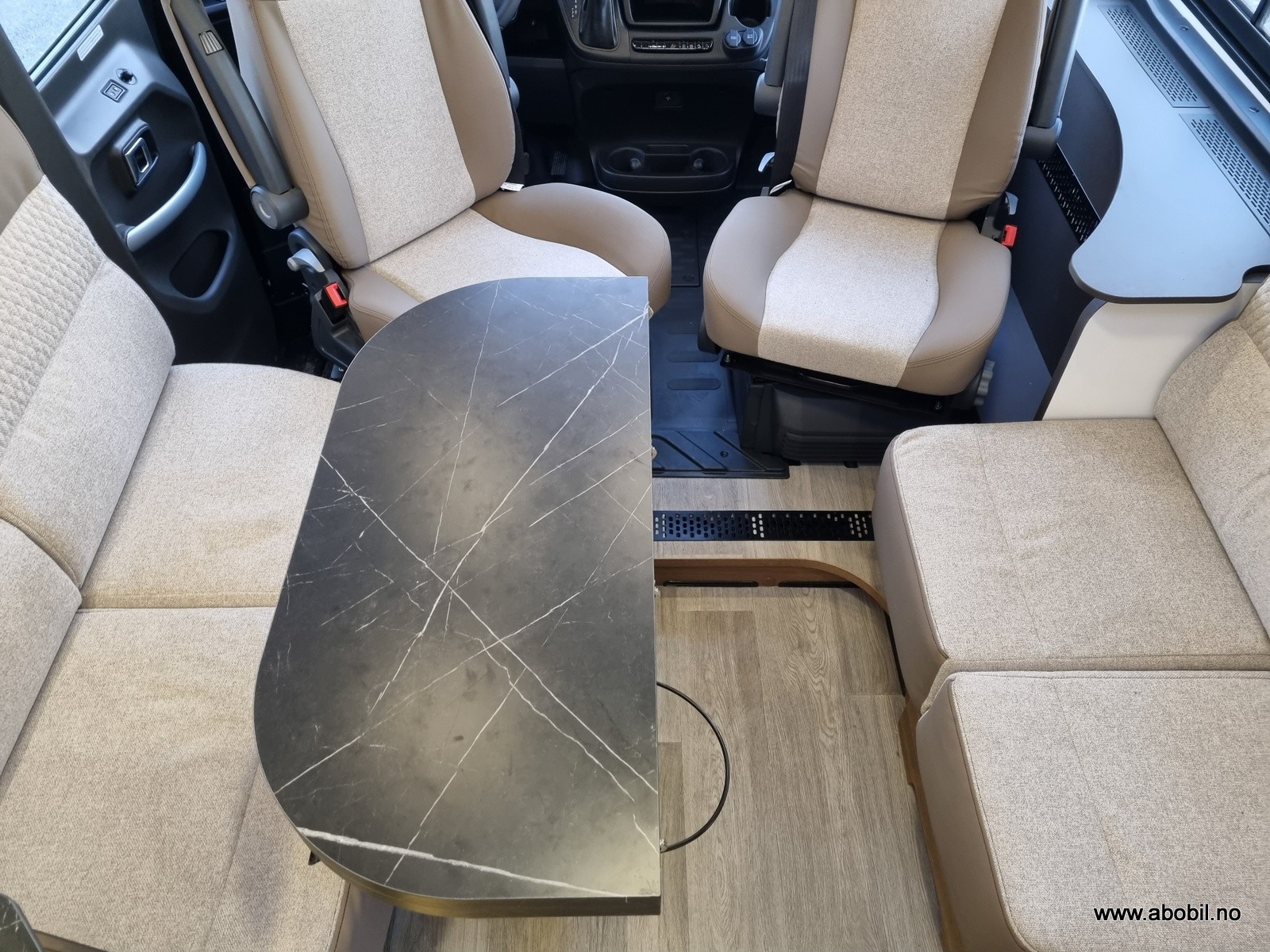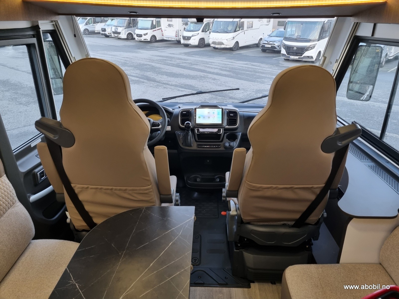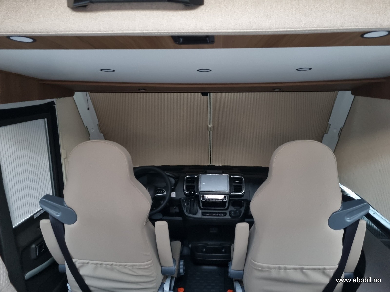 I førerdel finner du Aircondition, koppholdere, USB, DAB+ stereoanlegg med høyttalere også bak, ryggekamera og multifunksjonsratt. Svingbare og regulerbare pilotstoler med armlener og regulerbart ratt sørger for førsteklasses komfort. Sentrallås (inkludert bodelsdør).