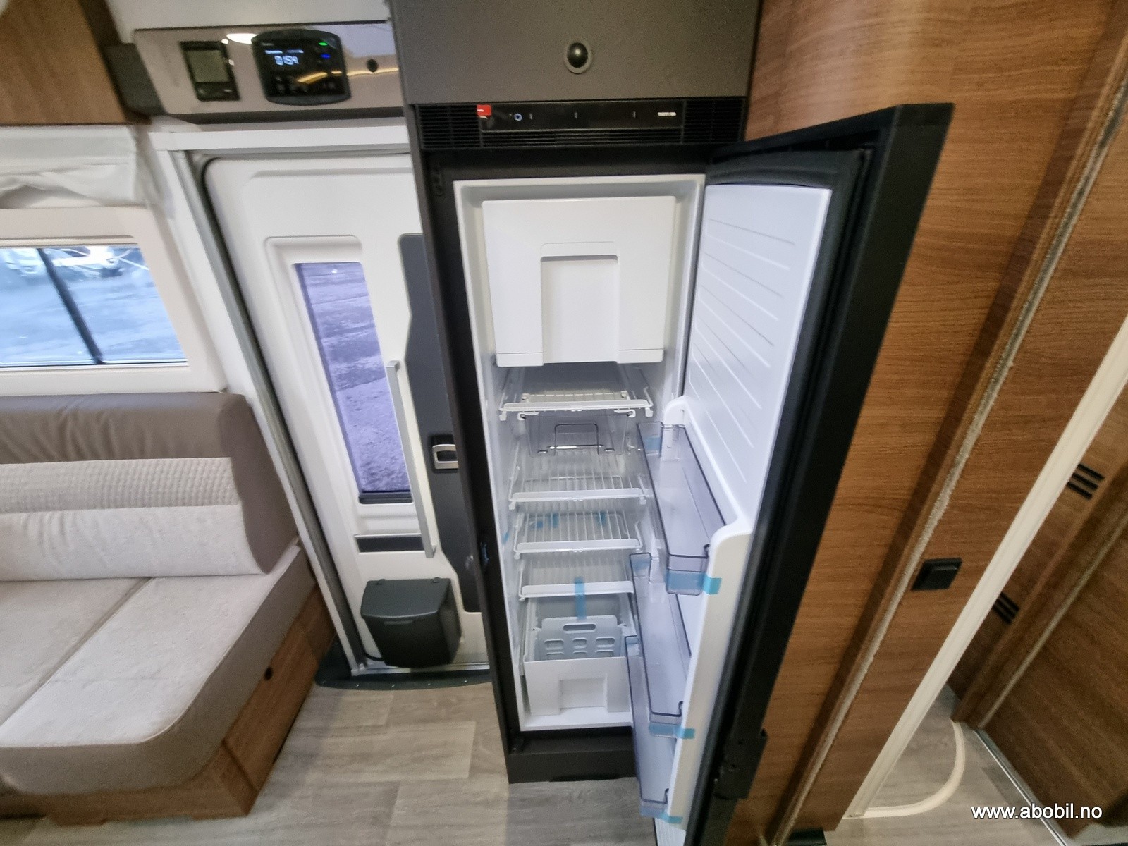 200W solcellepanel lader bodelsbatteriene effektivt – også under overskyet vær. ALDE vannbåren varme med elektriske elementer og full LED-belysning gjør bobilen godt rustet for langvarig fricamping, både sommer og vinter.