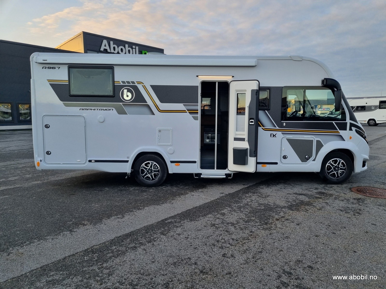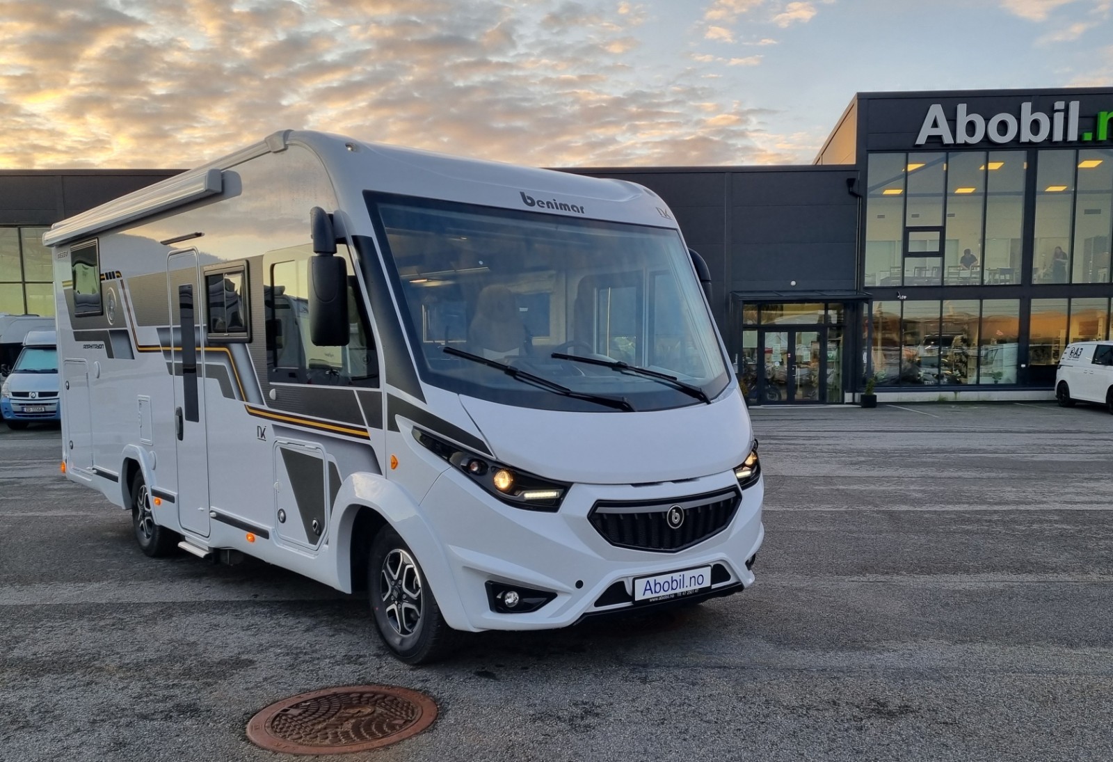 Vi har fått på lager en topputstyrt Benimar Amphitryon 967, 2026-modell – en luksuriøs bobil med gjennomført design, høy komfort og svært populær planløsning! Bygget på Fiat 2,2L 180HK med 8-trinns automatgir, med ALDE vannbåren varme er dette en modell som leverer både kvalitet og fleksibilitet – året rundt.