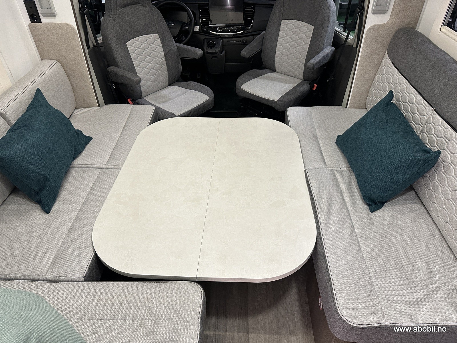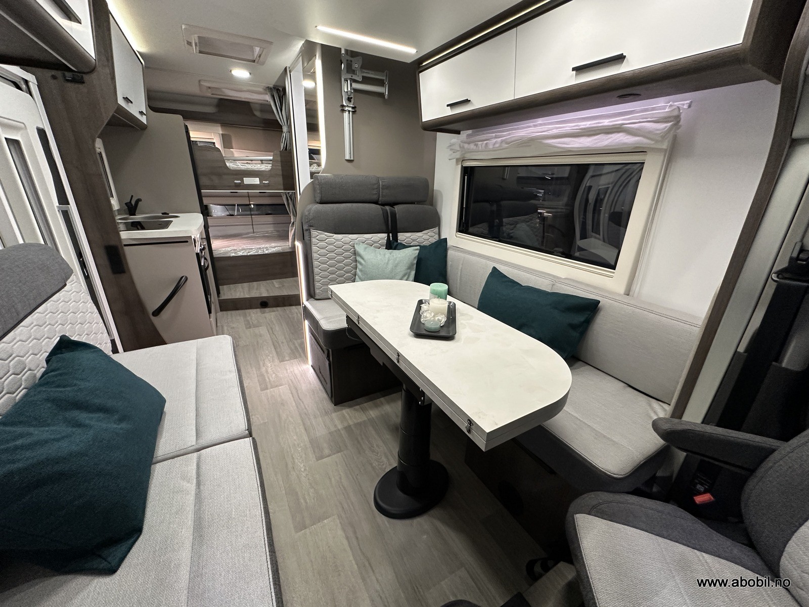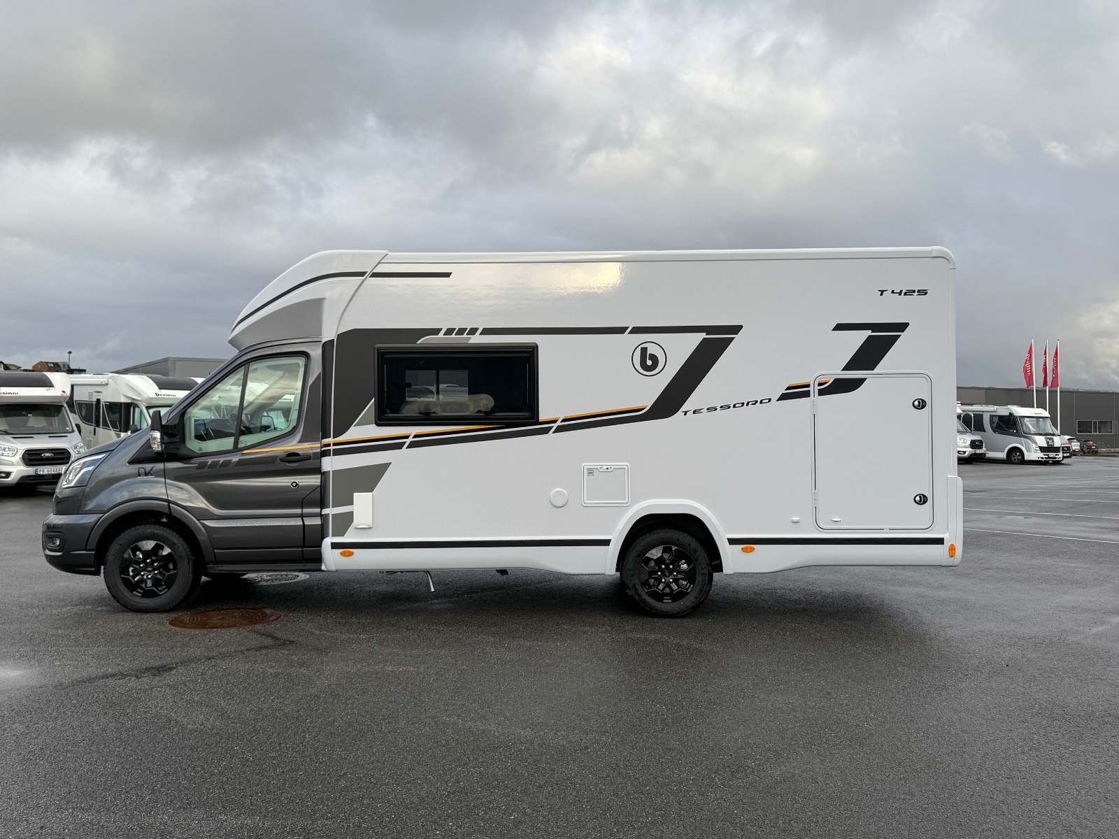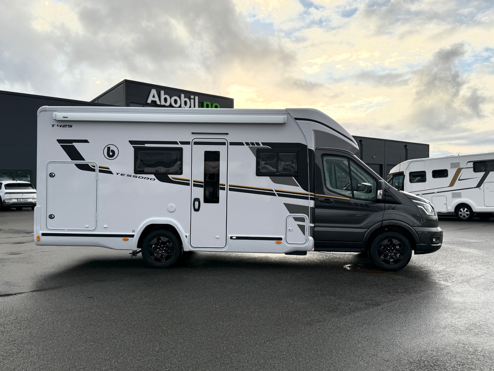 Nyhet fra Benimar! Tessoro T425, 2026 modell. Her har du en bobil som passer til småbarnsfamilien så vell som par som liker å ha muligheter for flere sengeplasser og spiseplasser. Bobilen er registrert for 5 personer og mulighet for 6 sengeplasser (vel og merke er soveplassene utover hovedseng og senkeseng tiltenkt barn) ved maks antall utnyttelse. Denne modellen har en svært romslig spisegruppe. Når man kommer inn i bobilen får man umiddelbar følelsen av at "her er det god plass". Badet er kompakt med smart dusjløsning for max plassutnyttelse til stor garderobe blant annet.