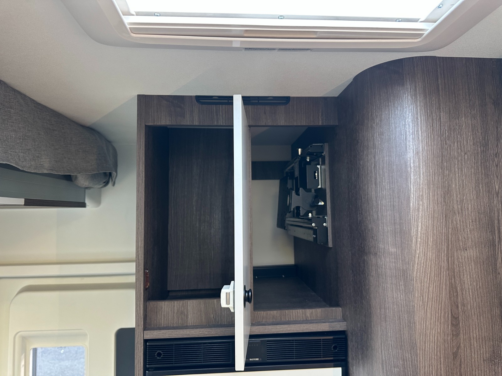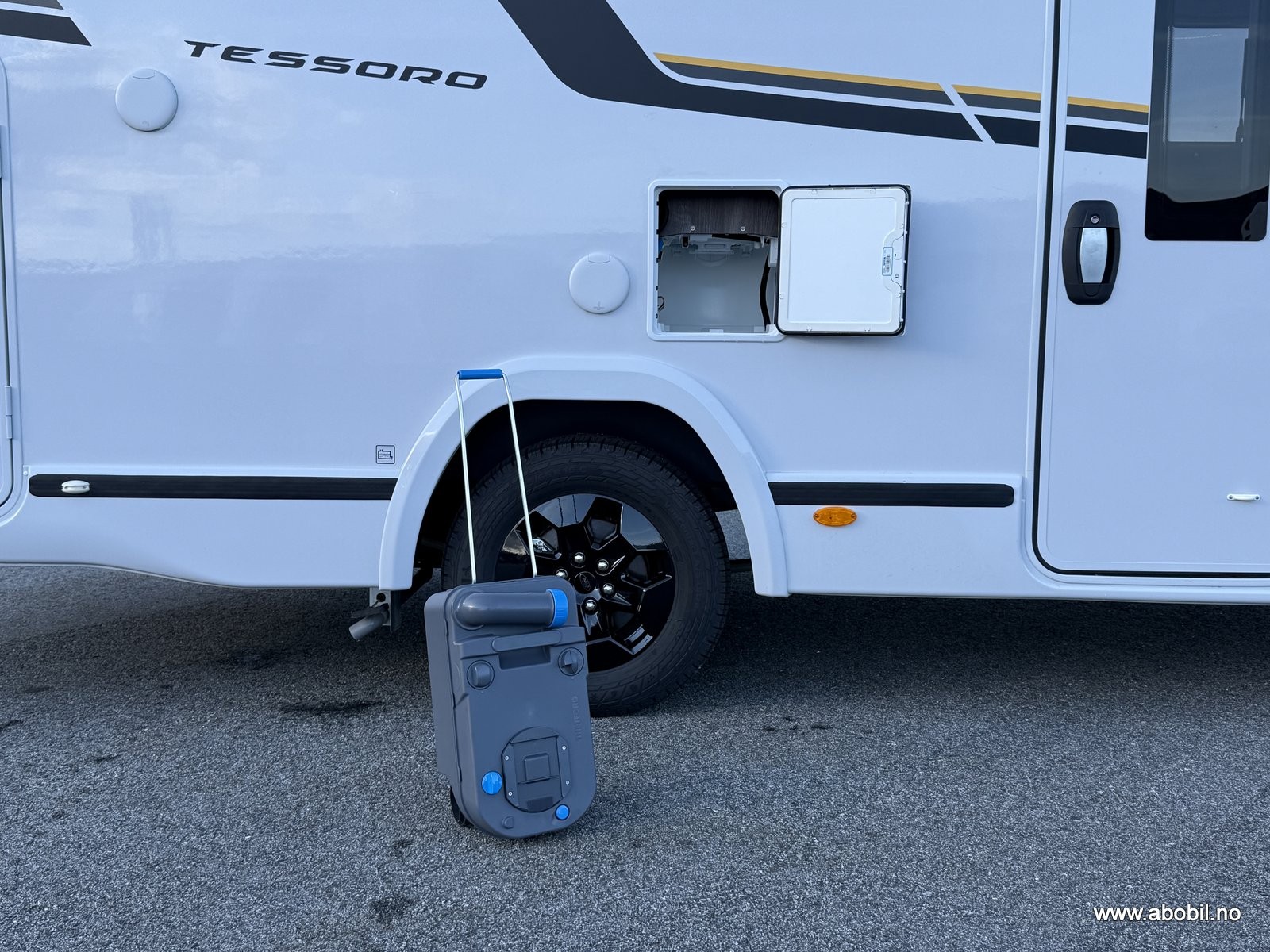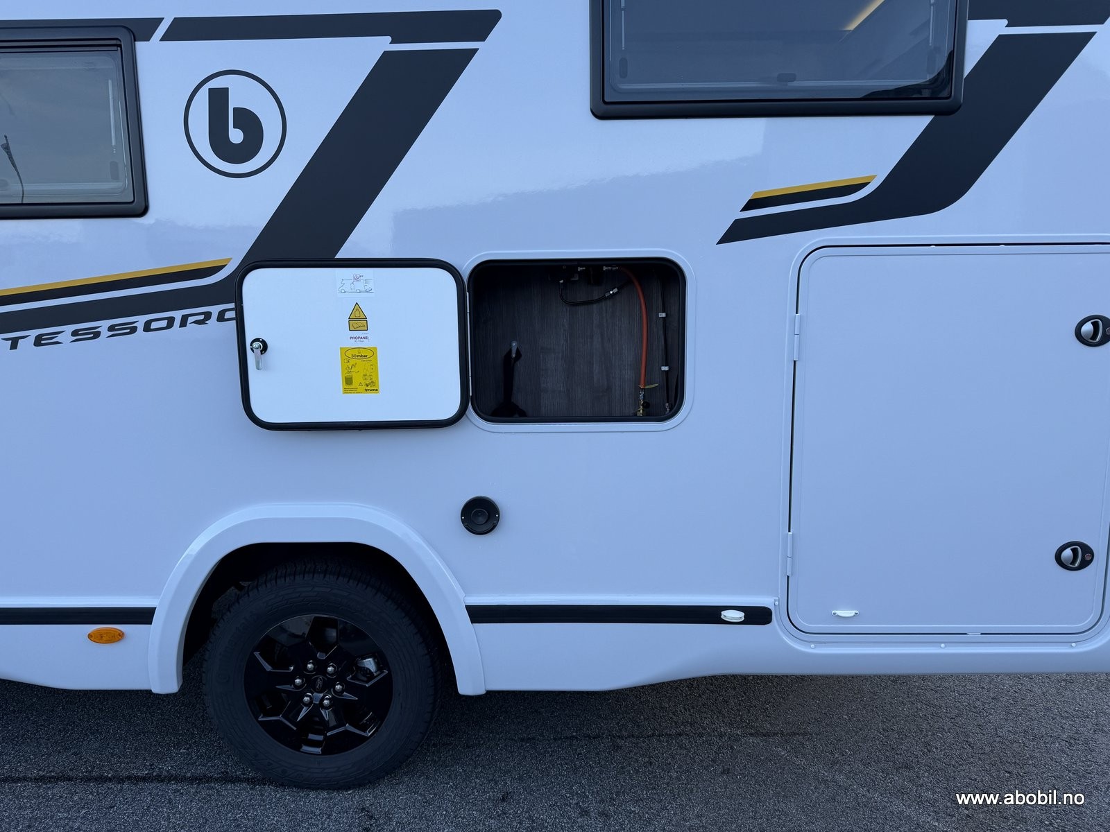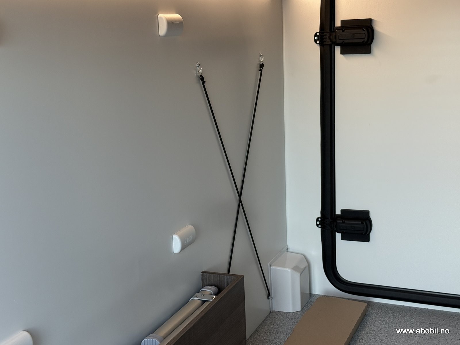 Garasjen er tilgjengelig fra begge sider og fra bodelen, og er utstyrt med lys og varme. Dette gjør den ideell for sikker lagring av større gjenstander som sykler og campingutstyr, samtidig som den gir enkel tilgang fra innsiden av bobilen.