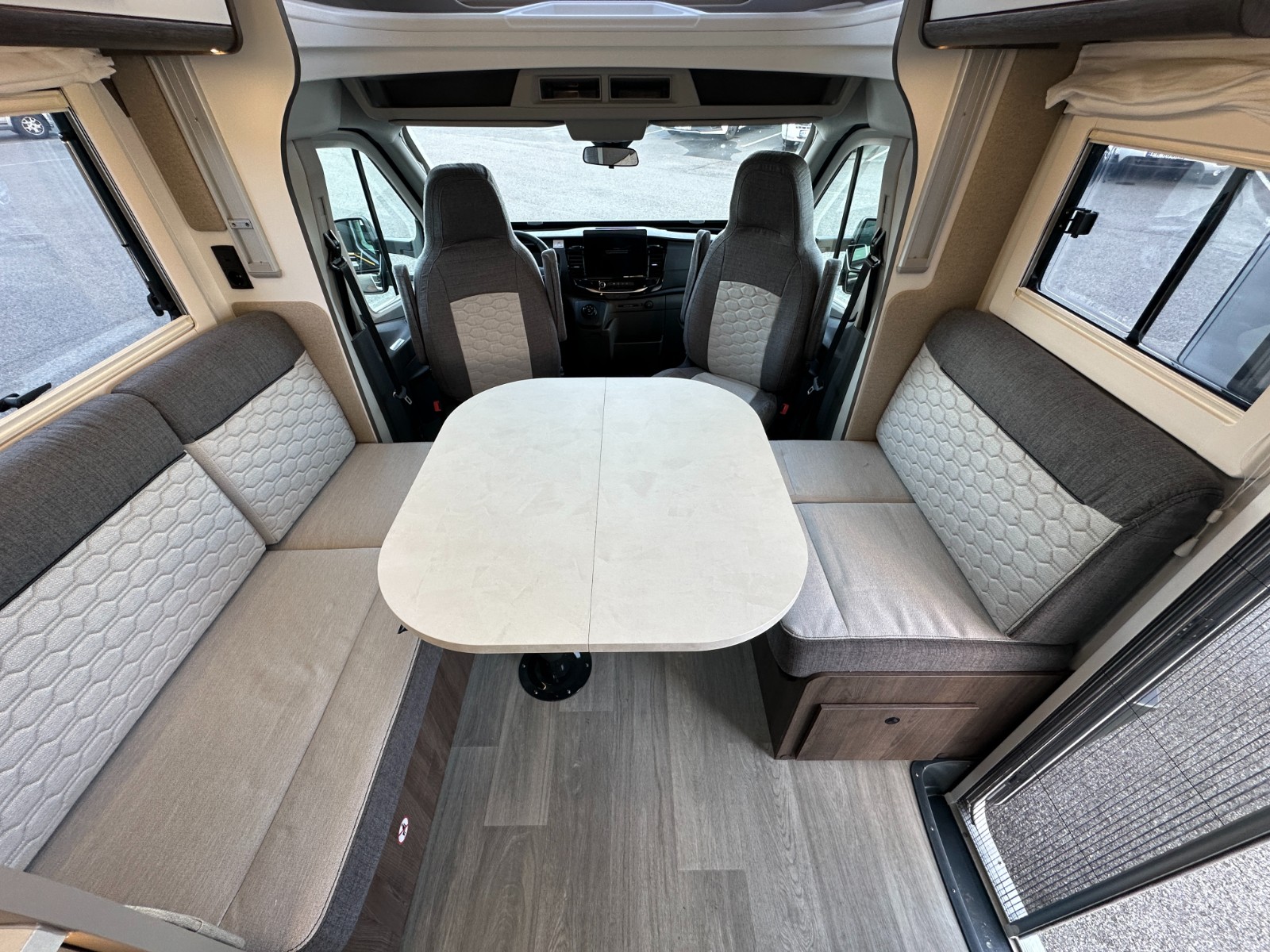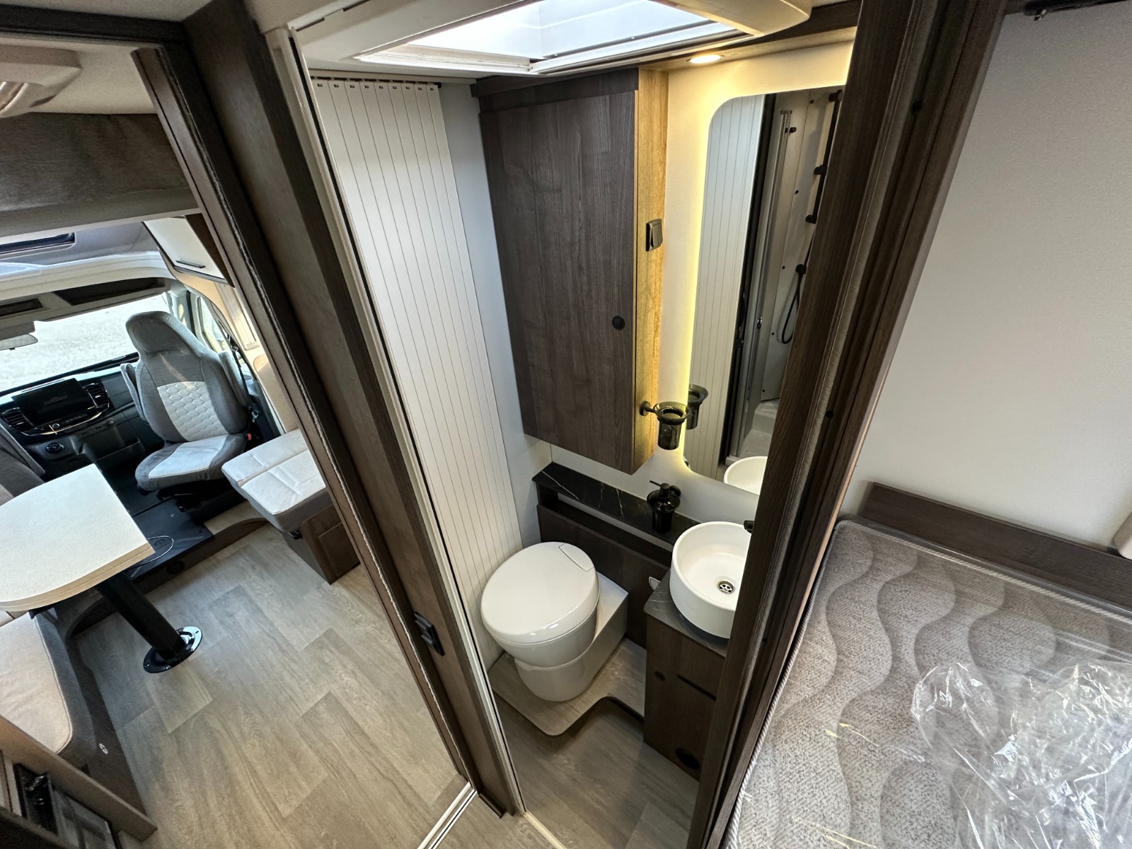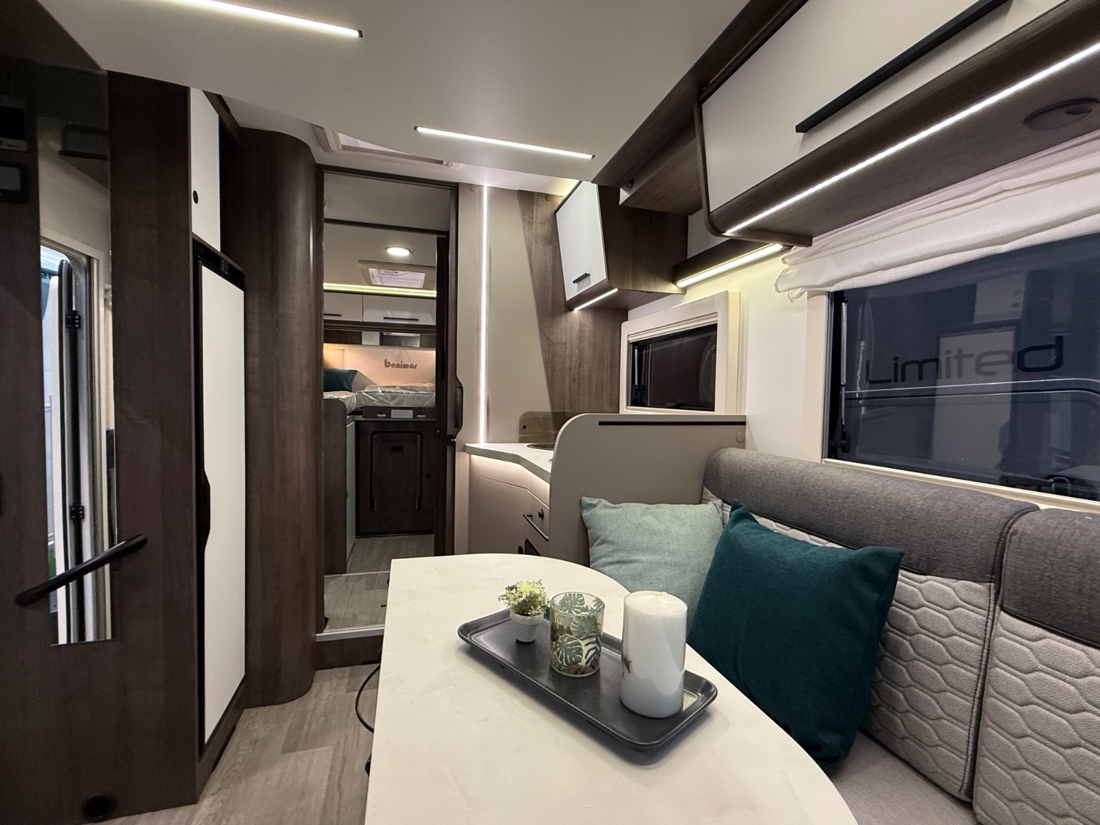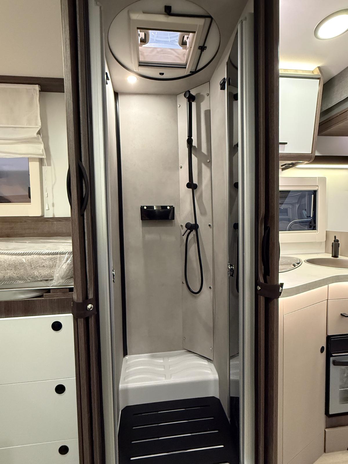 Denne bobilen kombinerer luksus og praktisk design, perfekt for både korte og lange reiser, uansett årstid.