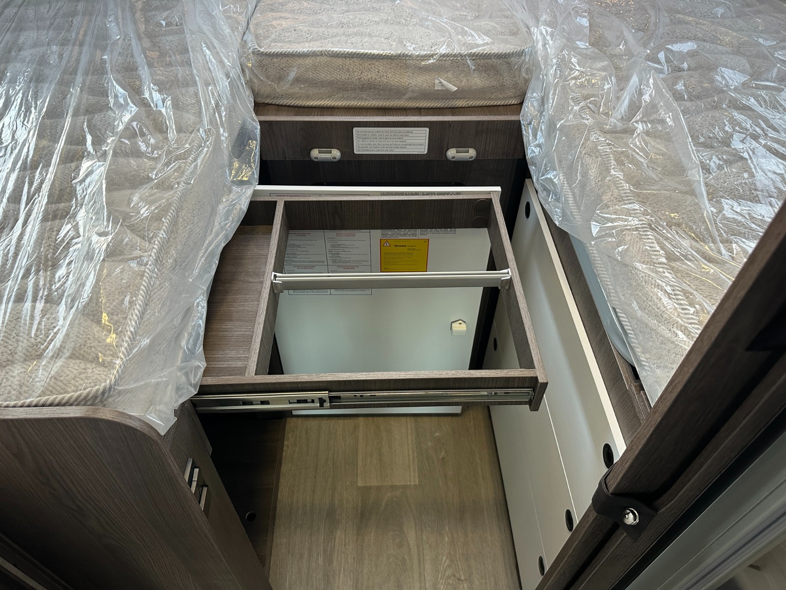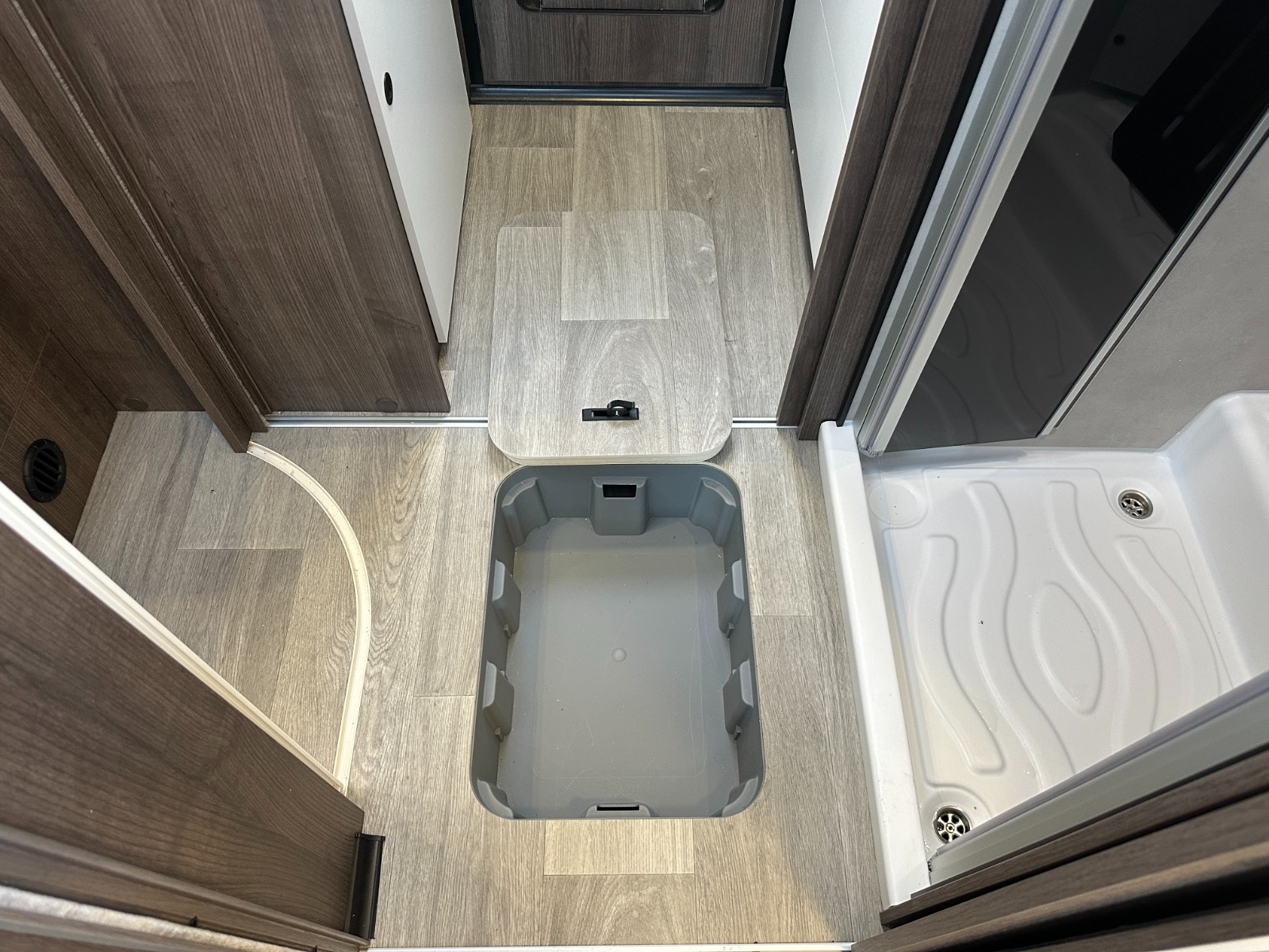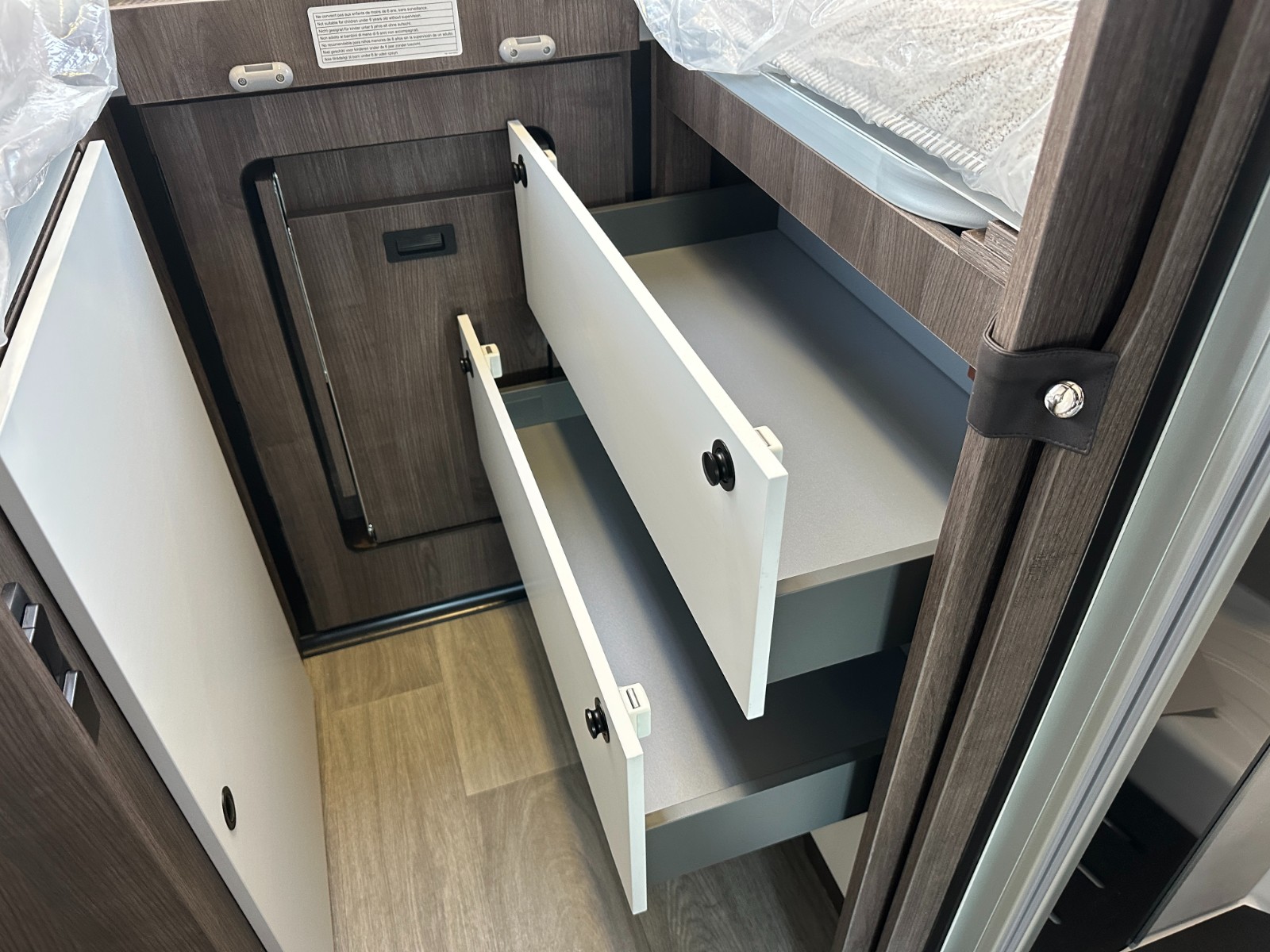 Det inkluderer også et stort kjøleskap med fryser (totalt 150l) og rikelig med lagringsplass for både matvarer og kjøkkenutstyr,