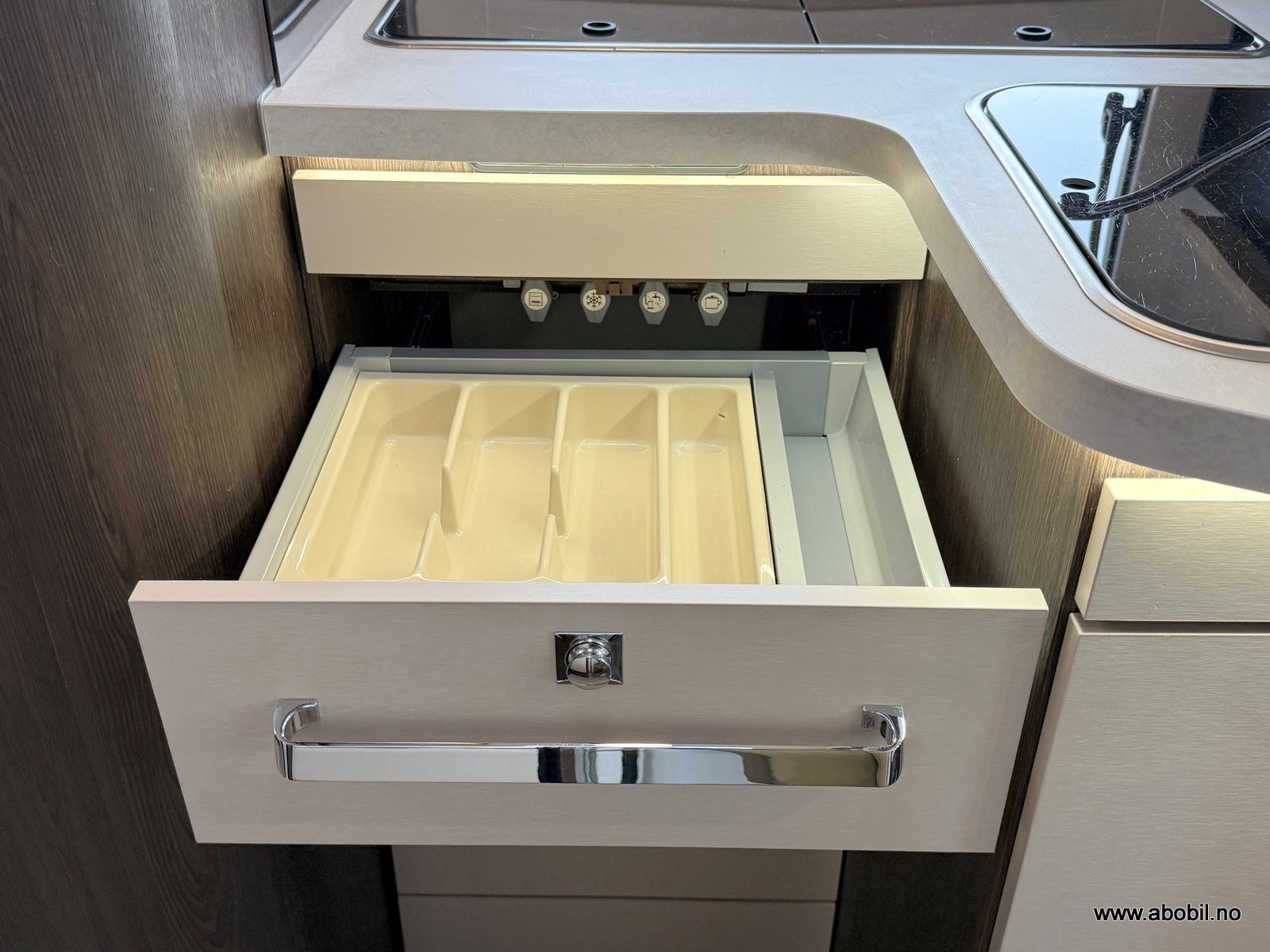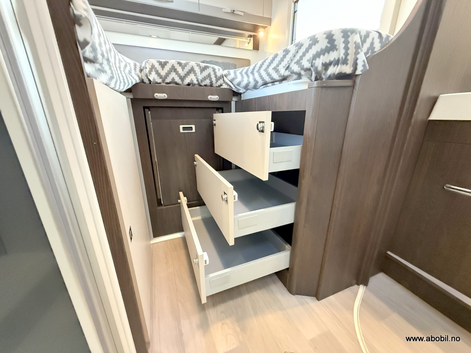 • Flere smarte skapløsninger og lagring i hele bilen, inkl. skuffesystem under sengene