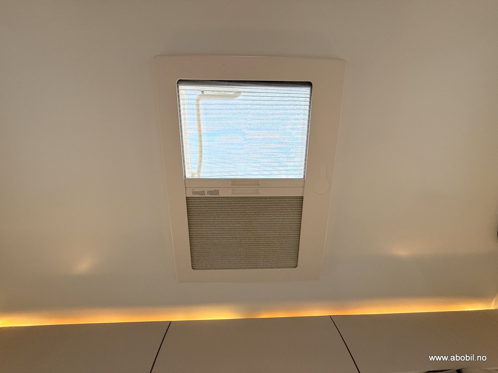Salongen har god takhøyde, store vinduer, panoramatakluke, og energieffektiv LED-belysning som setter stemningen.
