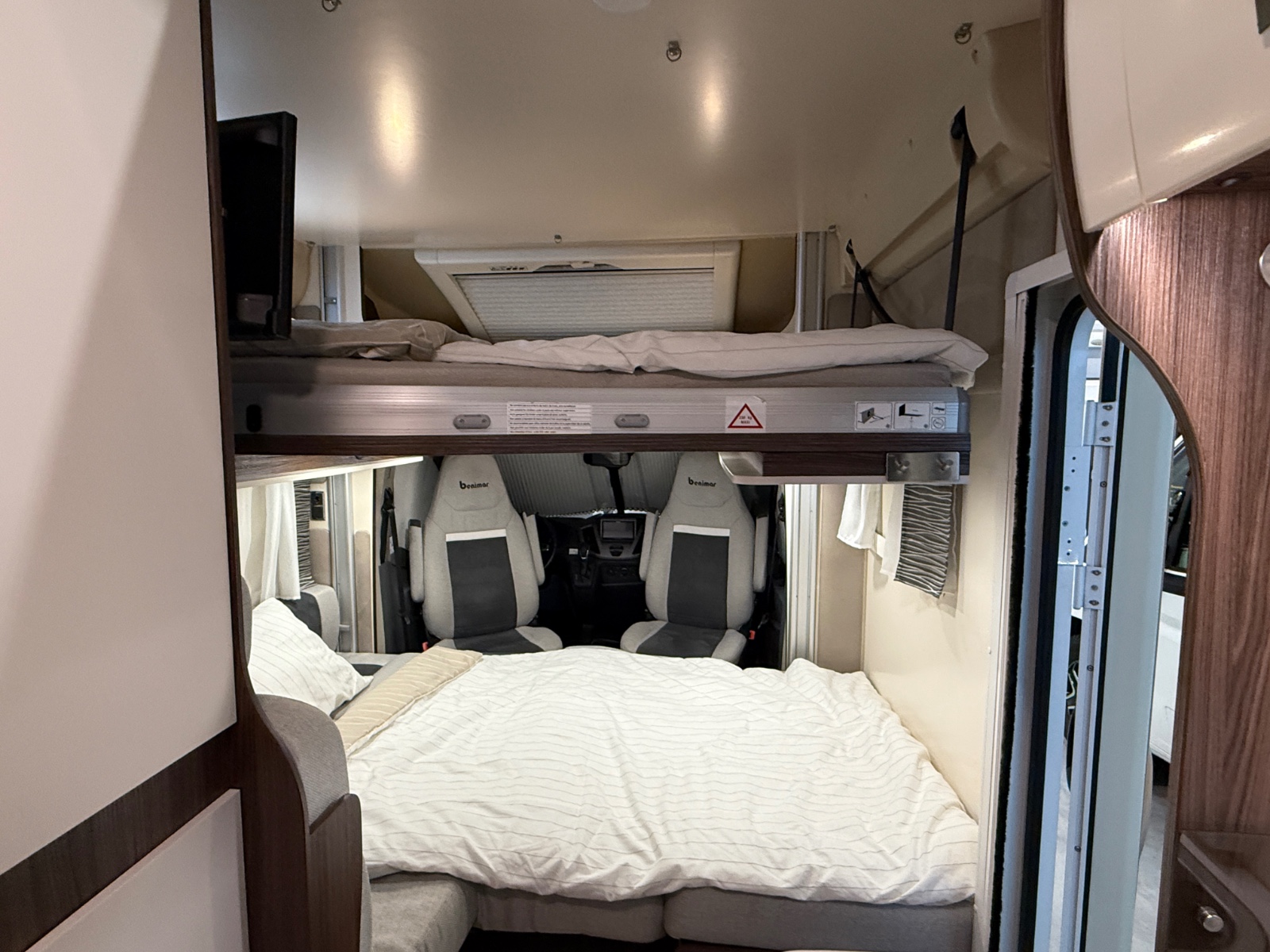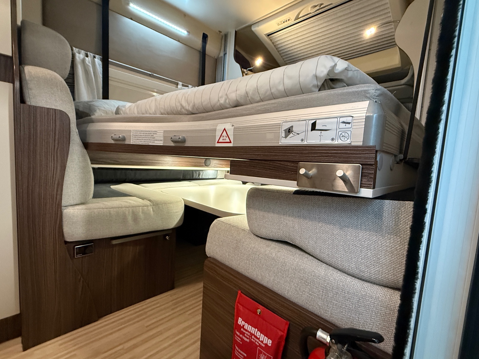De resterende sengeplassene finner man i taket over salong salongen. Det er en meget behagelig stor elektrisk senkeseng i taket.