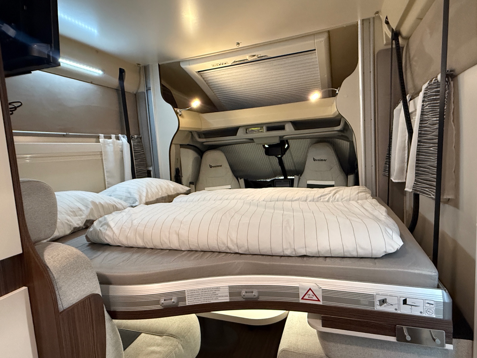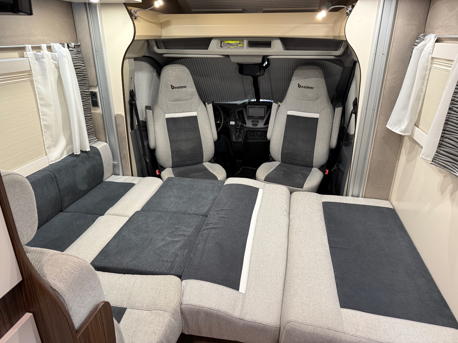 Førerdelen har også Ryggekamera, multifunksjonsratt i skinn, formørkning. Regulerbare pilotstoler med armlene, cruisekontroll, varme i speil og det er også 4-veis regulerbart ratt. Denne bobilen oppleves nærmest som en flott personbil.