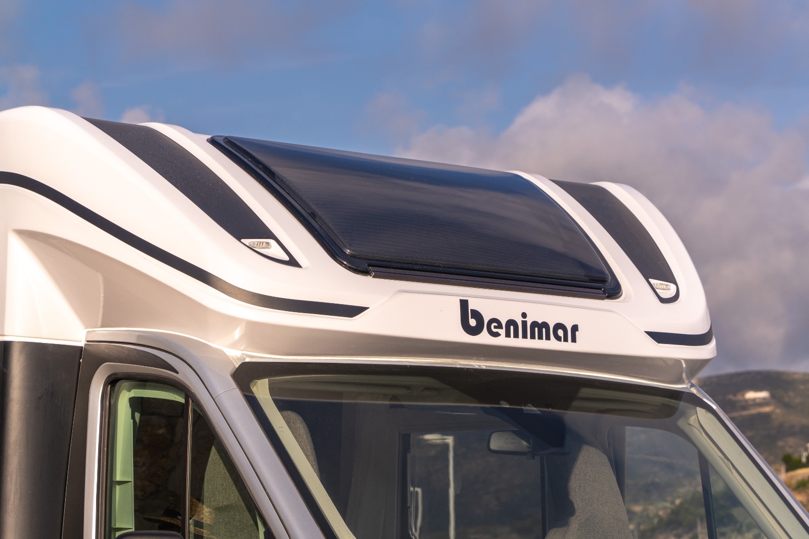 Denne bobilen leveres med «alt» utstyr og har derfor også 140 watt solcelle på taket som lader batteriet selv på dager med overskyet vær.