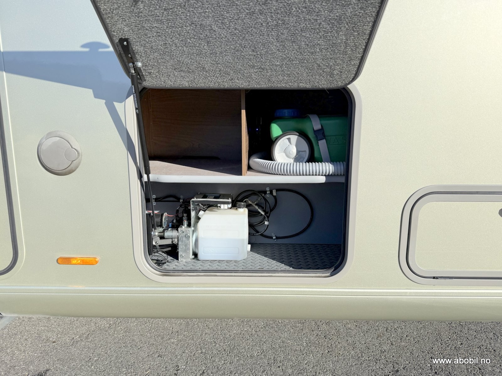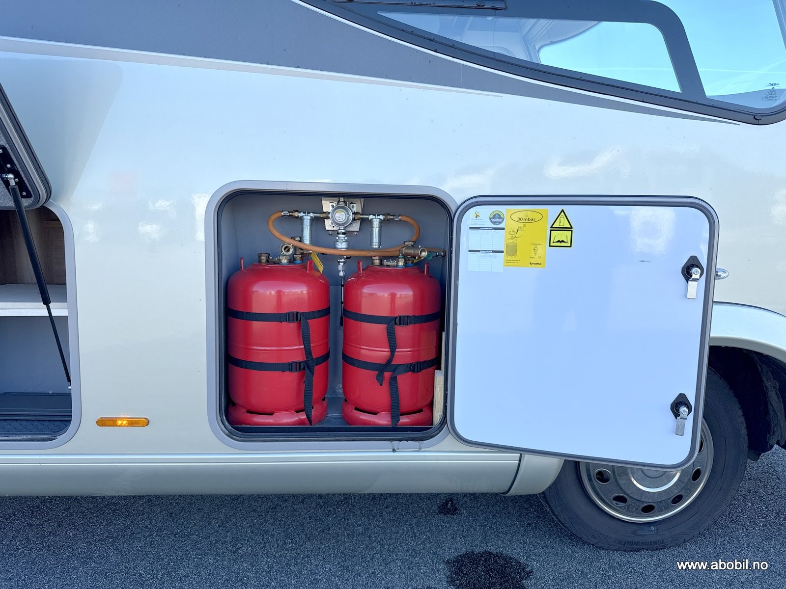 Plass til 2 store gassflasker gir lang brukstid mellom påfyll.