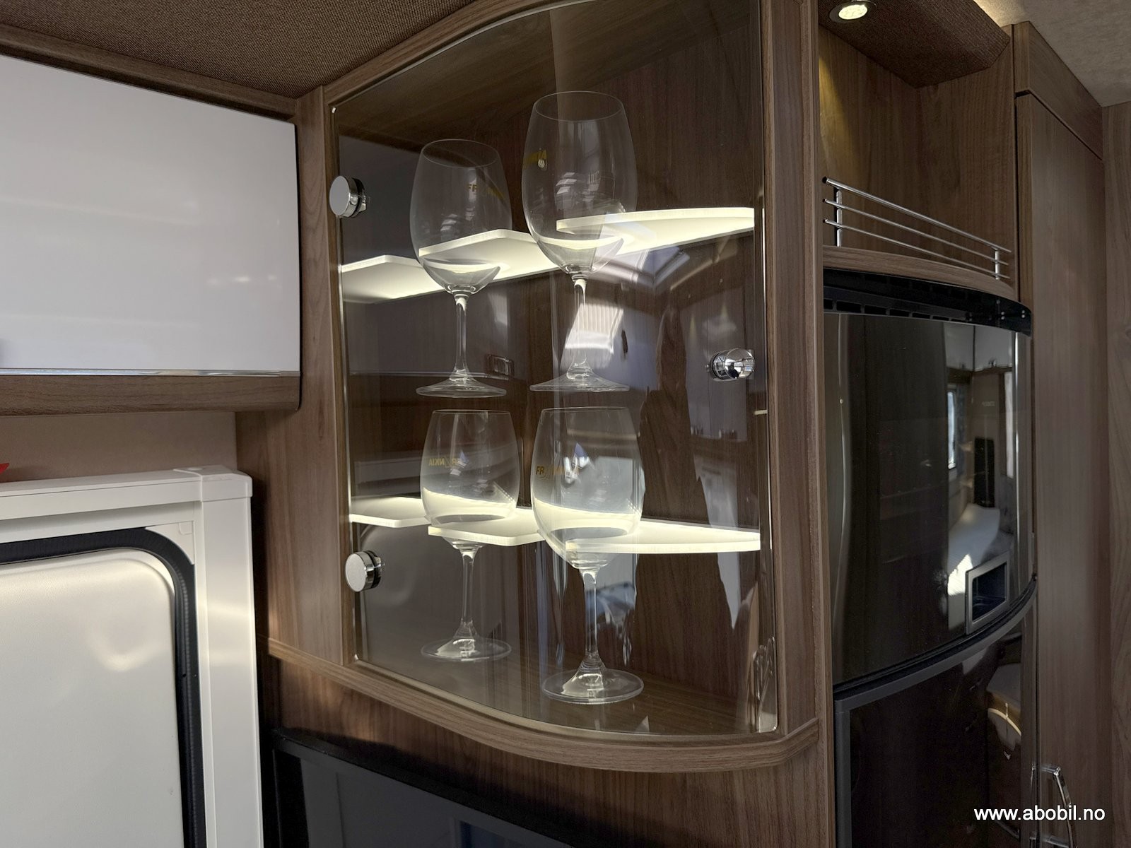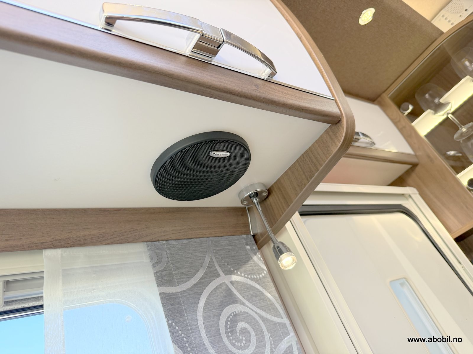 Høyttalere i bodelen og stemningsfull LED-belysning gir en lun og hyggelig atmosfære.