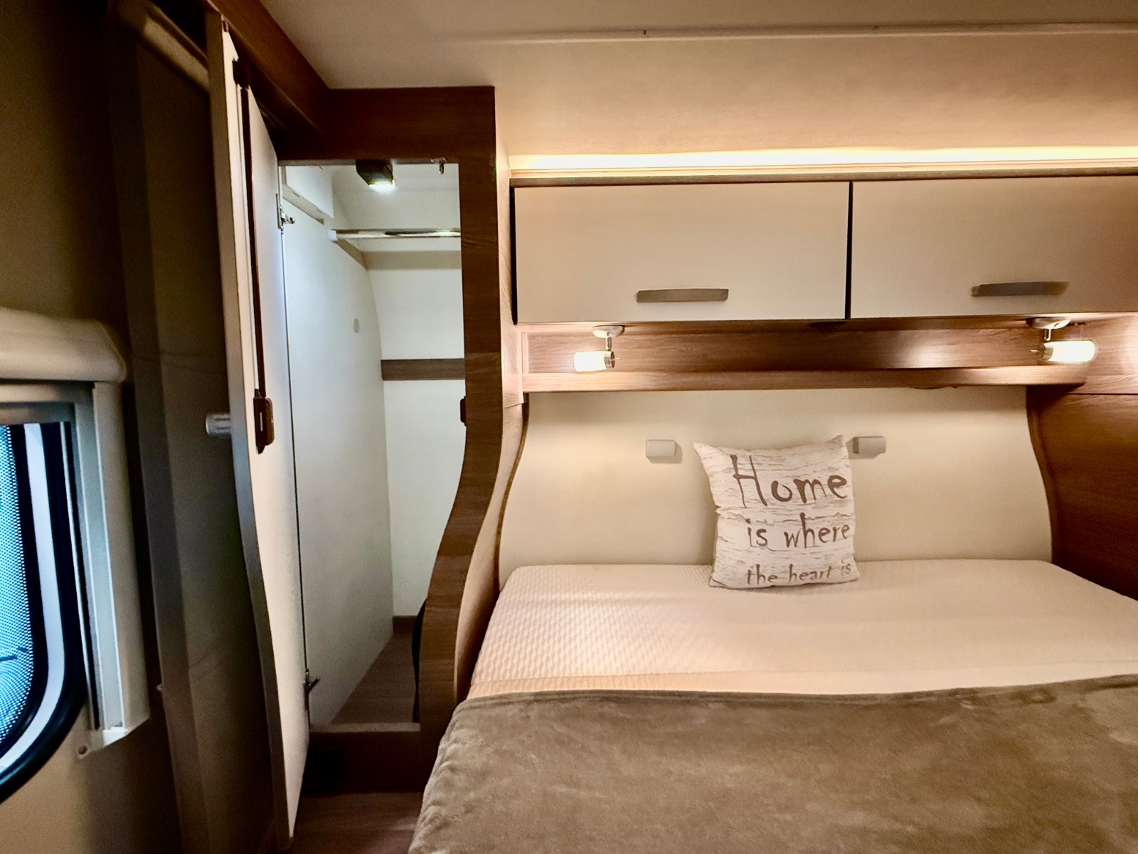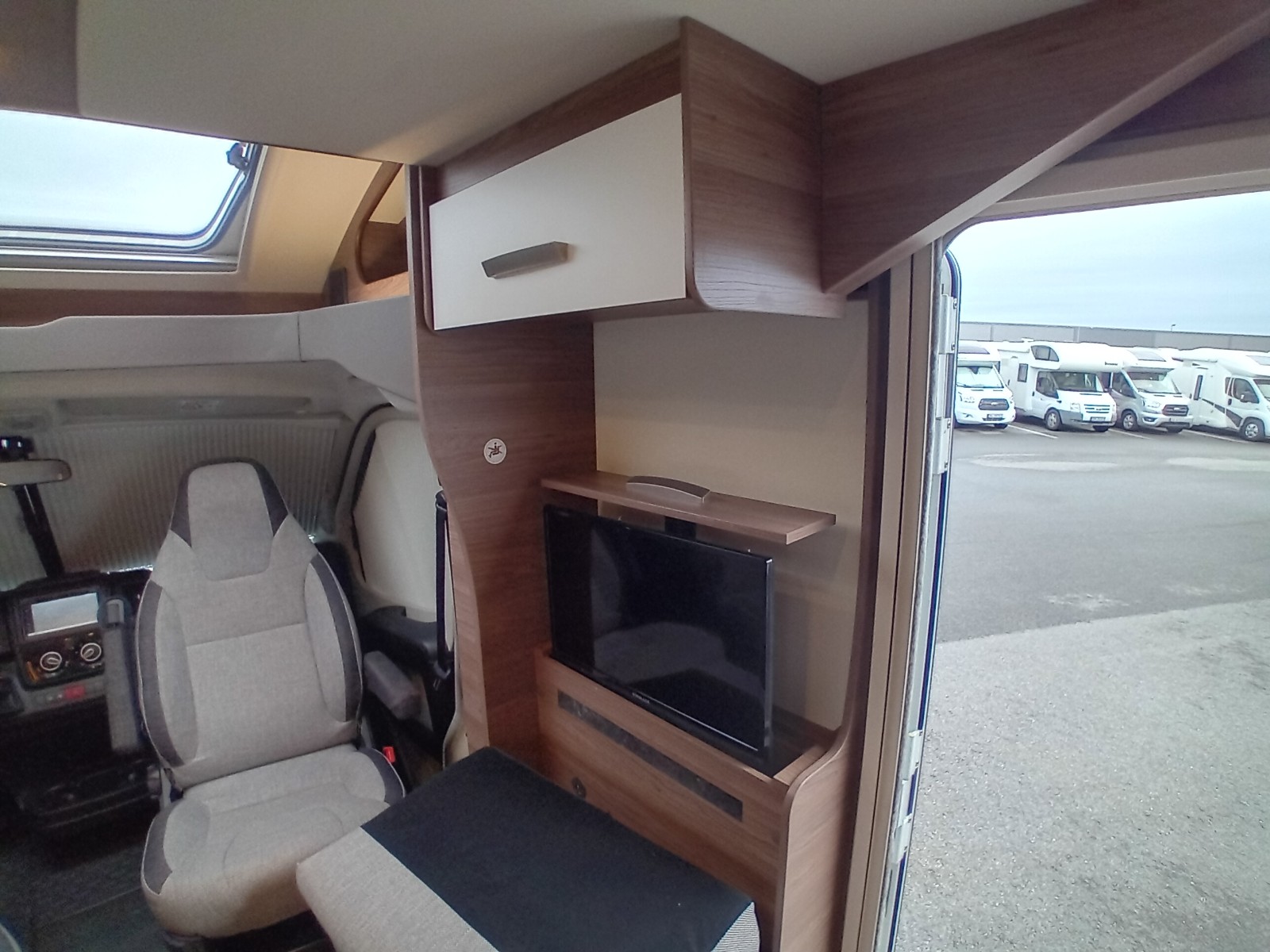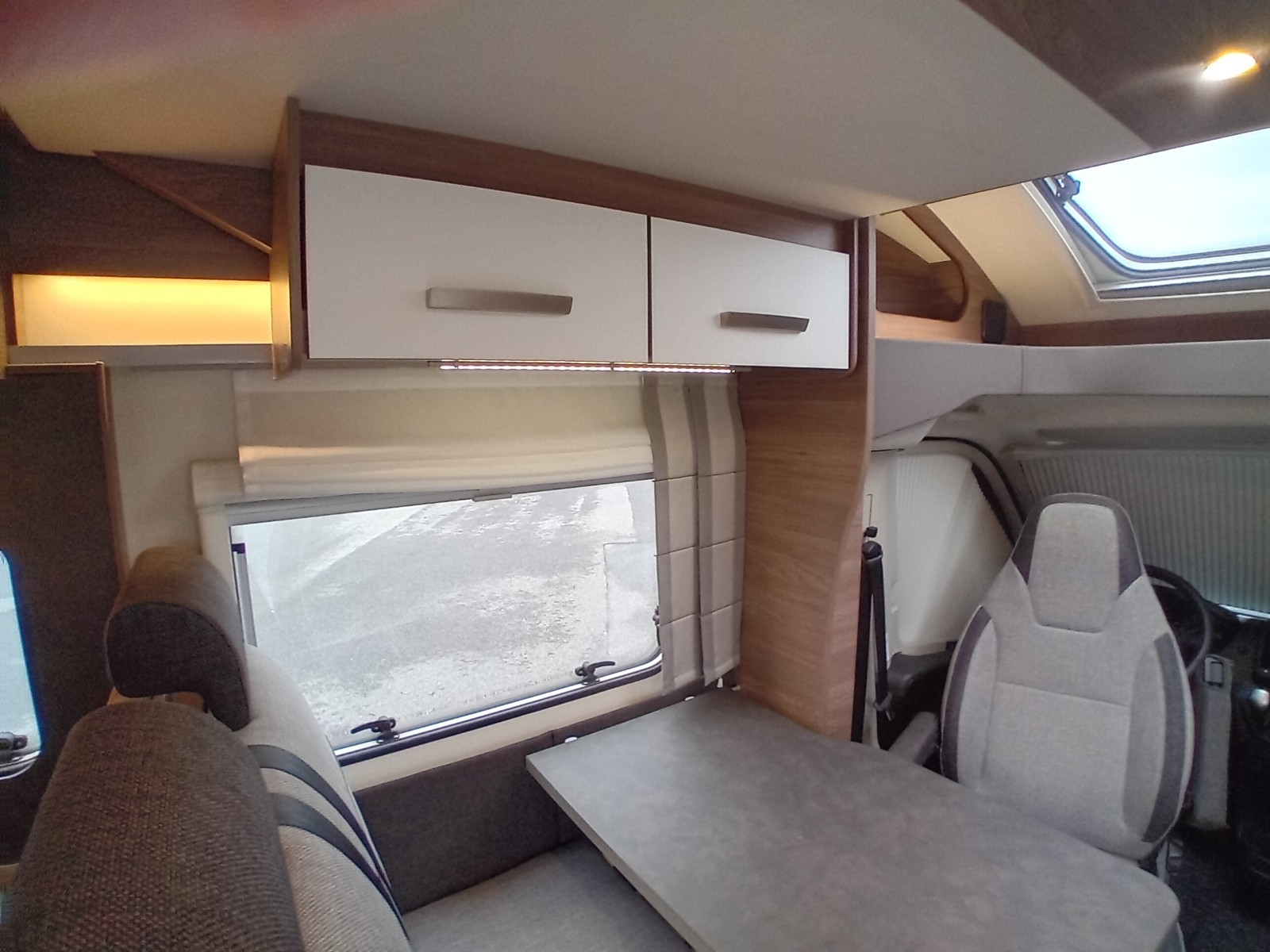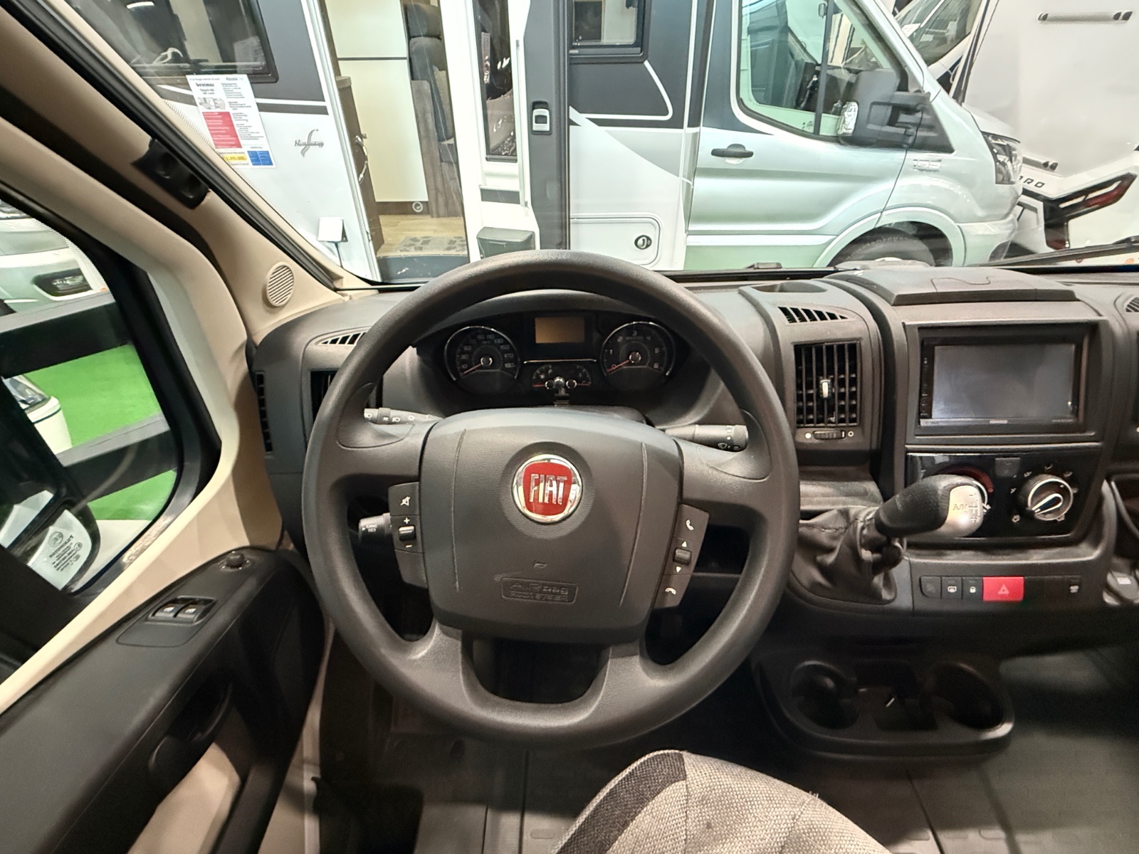 Førerdelen har også Ryggekamera, multifunksjonsratt, formørkning i alle vinduer, Regulerbare pilotstoler med armlene, cruisekontroll og regulerbart ratt. Denne bobilen oppleves nærmest som en flott personbil.