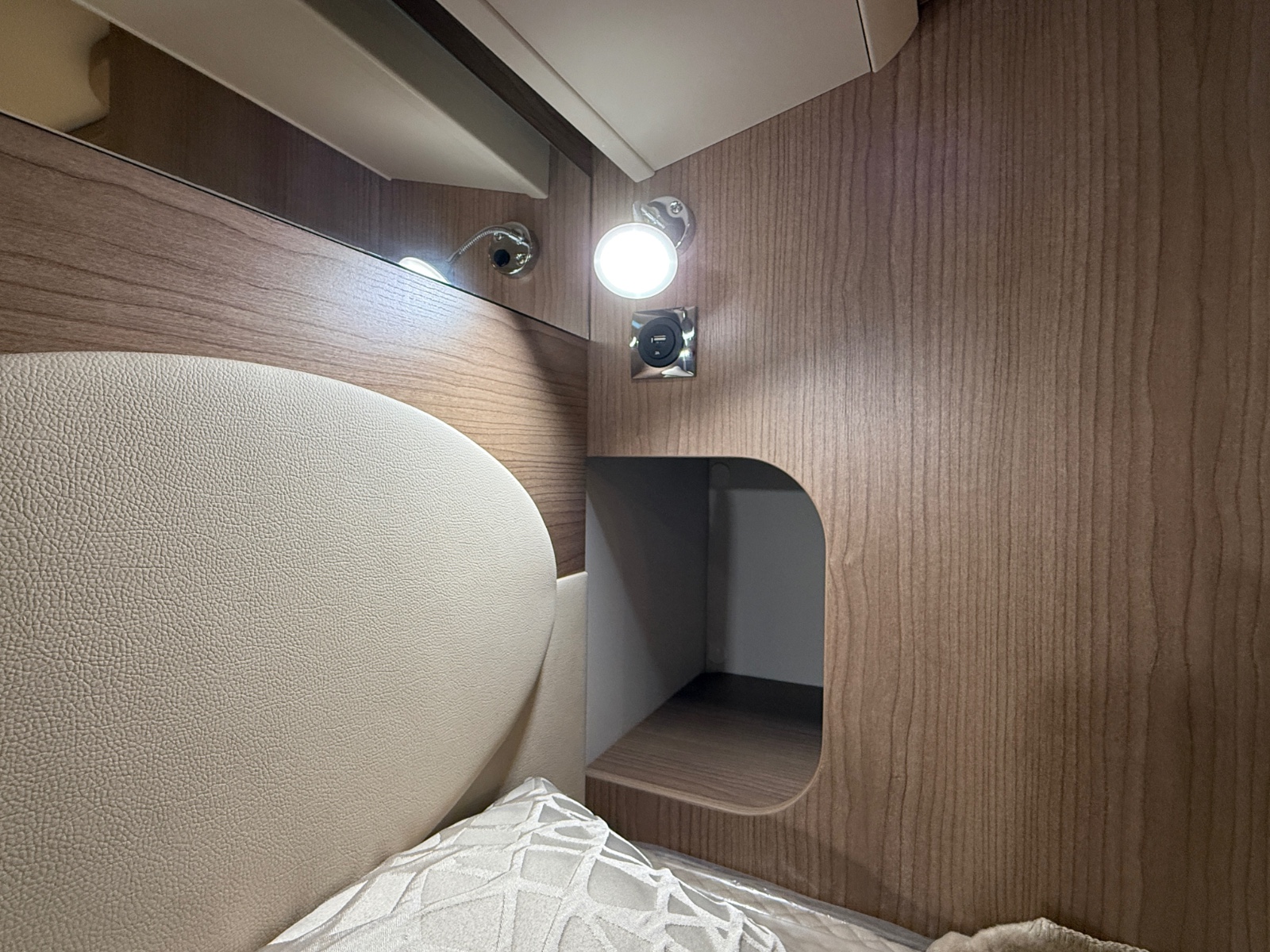 •USB-kontakt over bakre seng