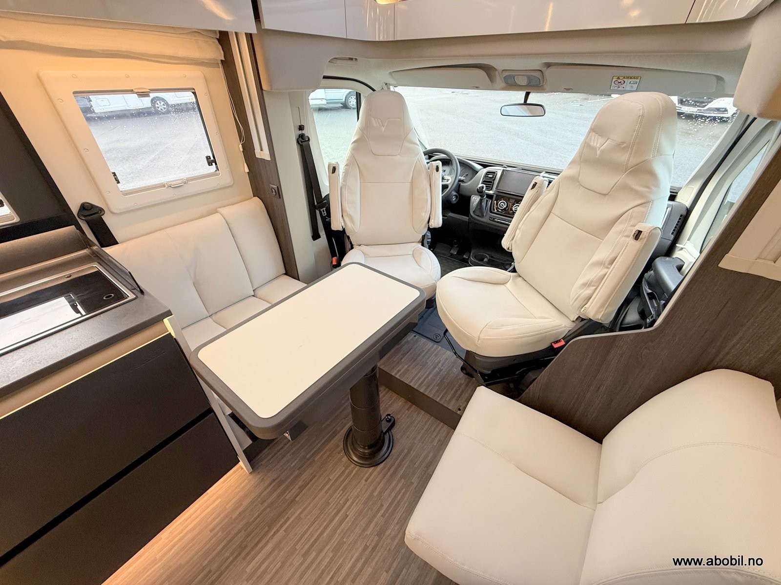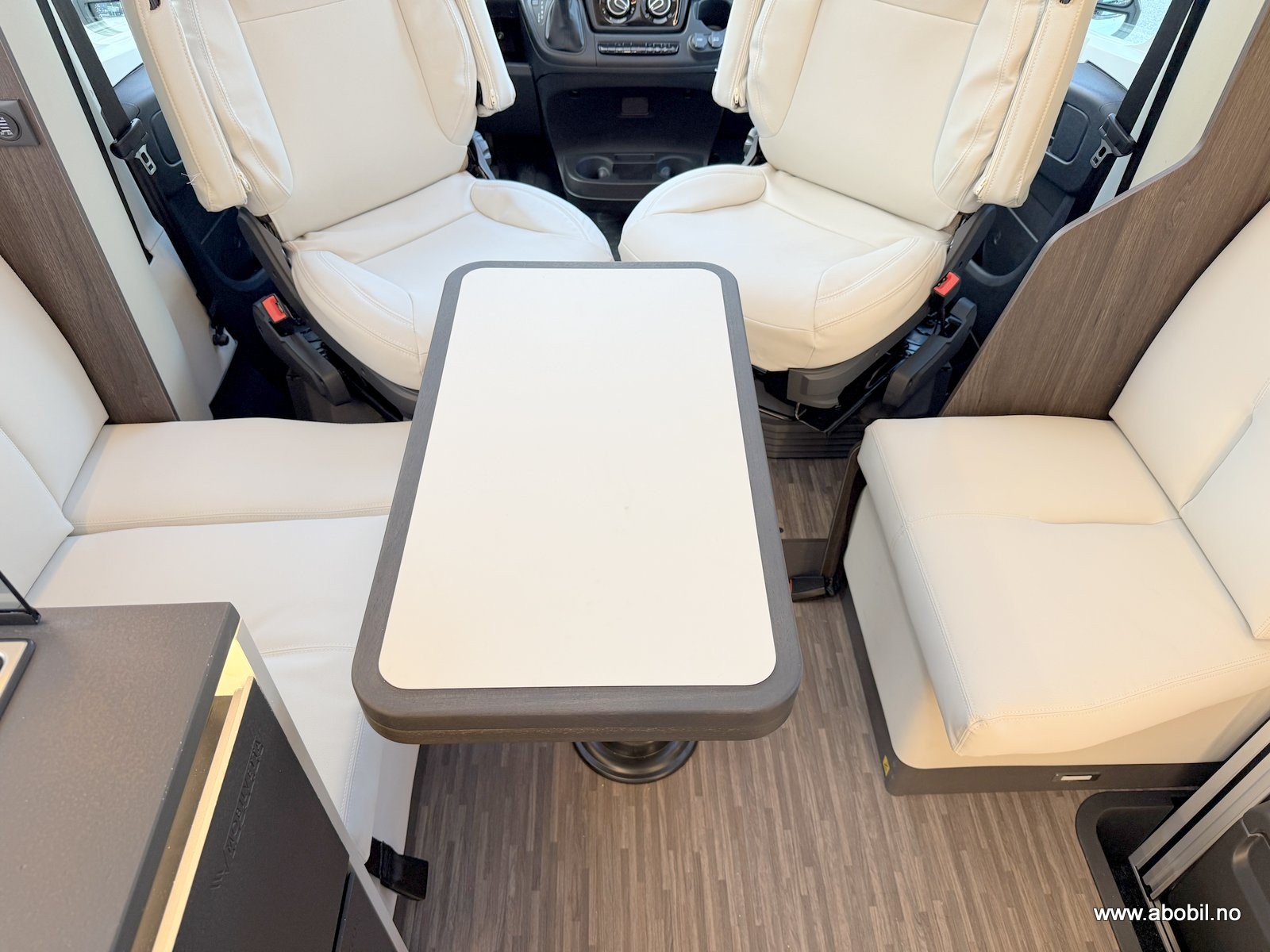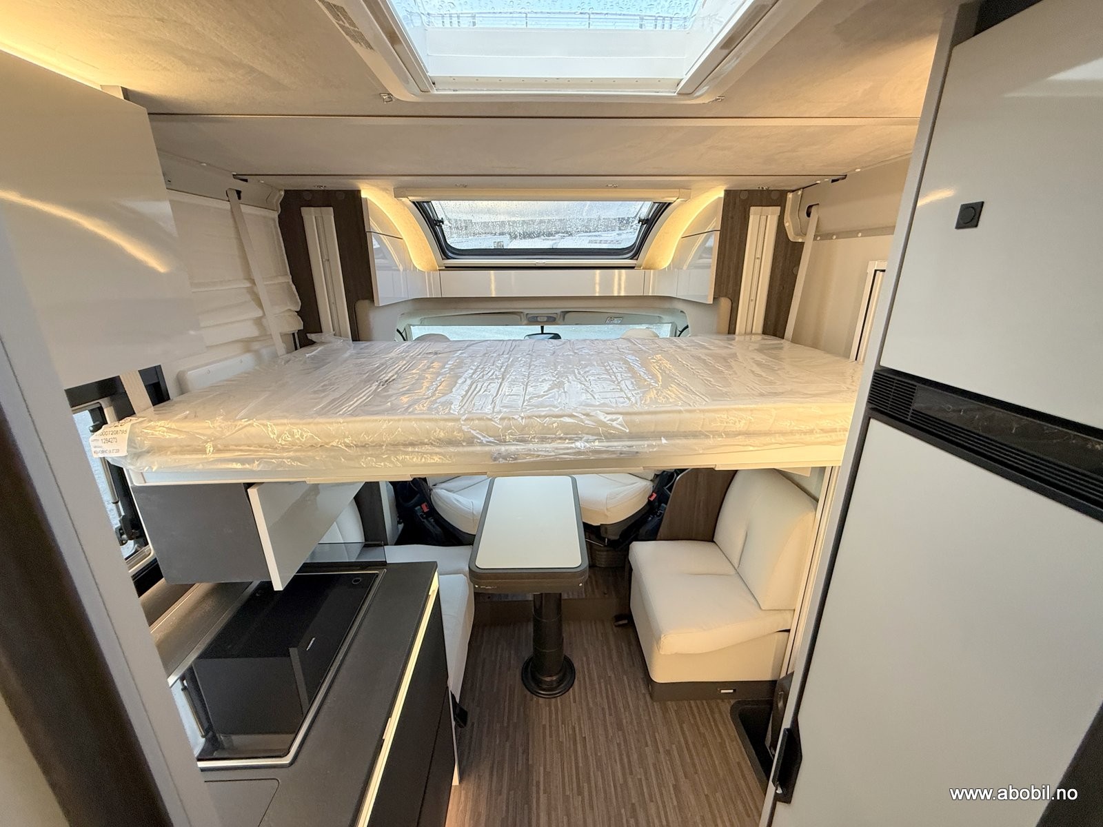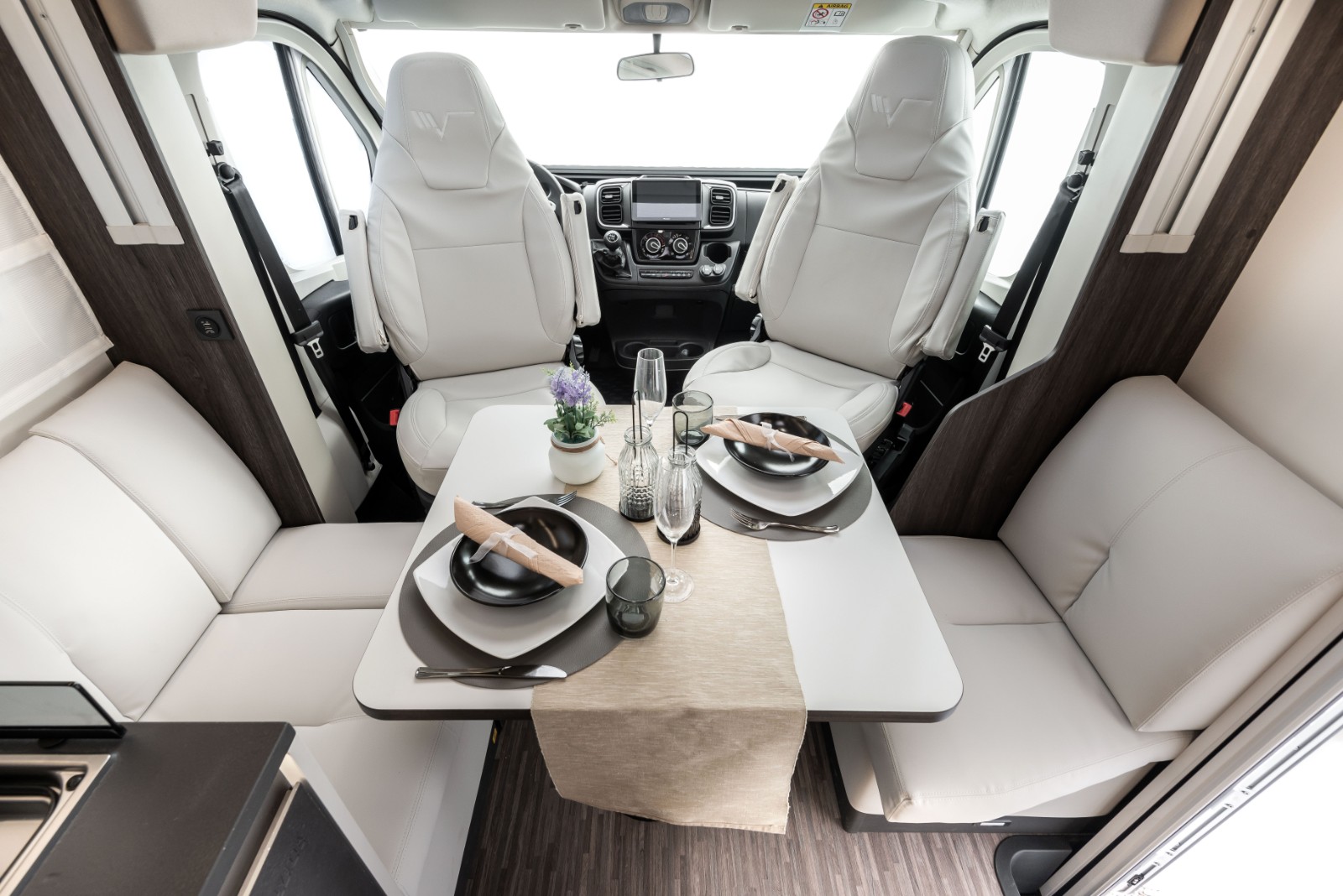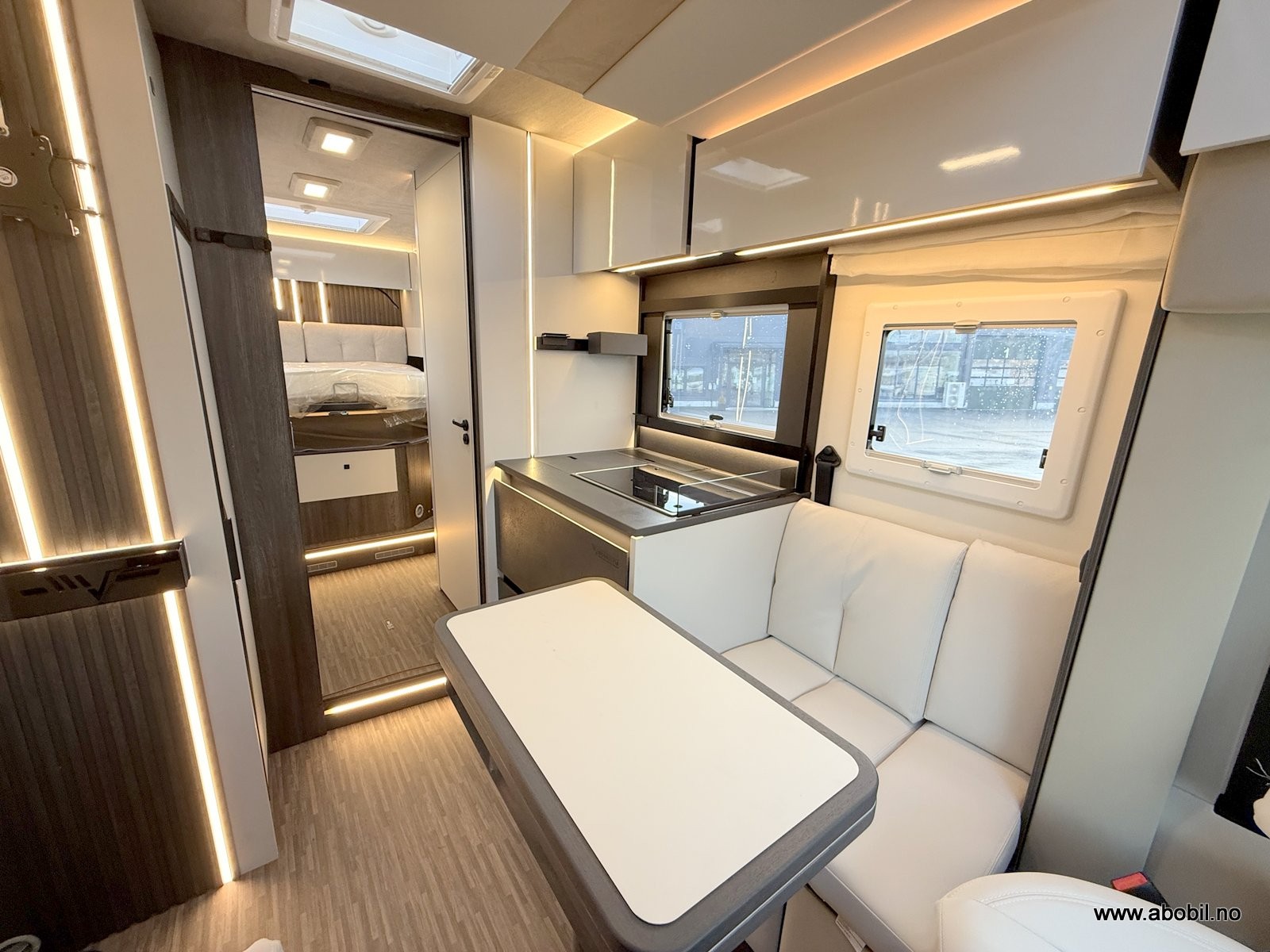 Bobilen har store vinduer, flere takluker og panoramatak gir maksimalt dagslys og høy bokomfort i et moderne miljø.