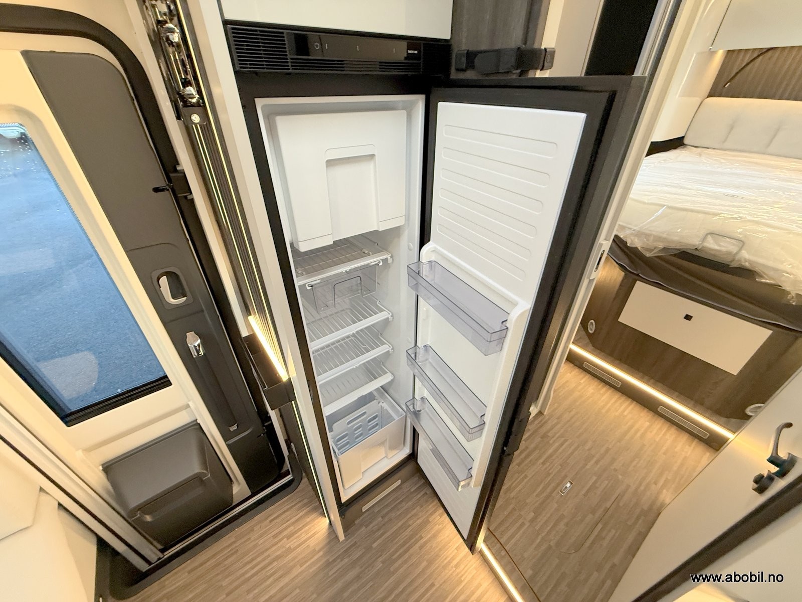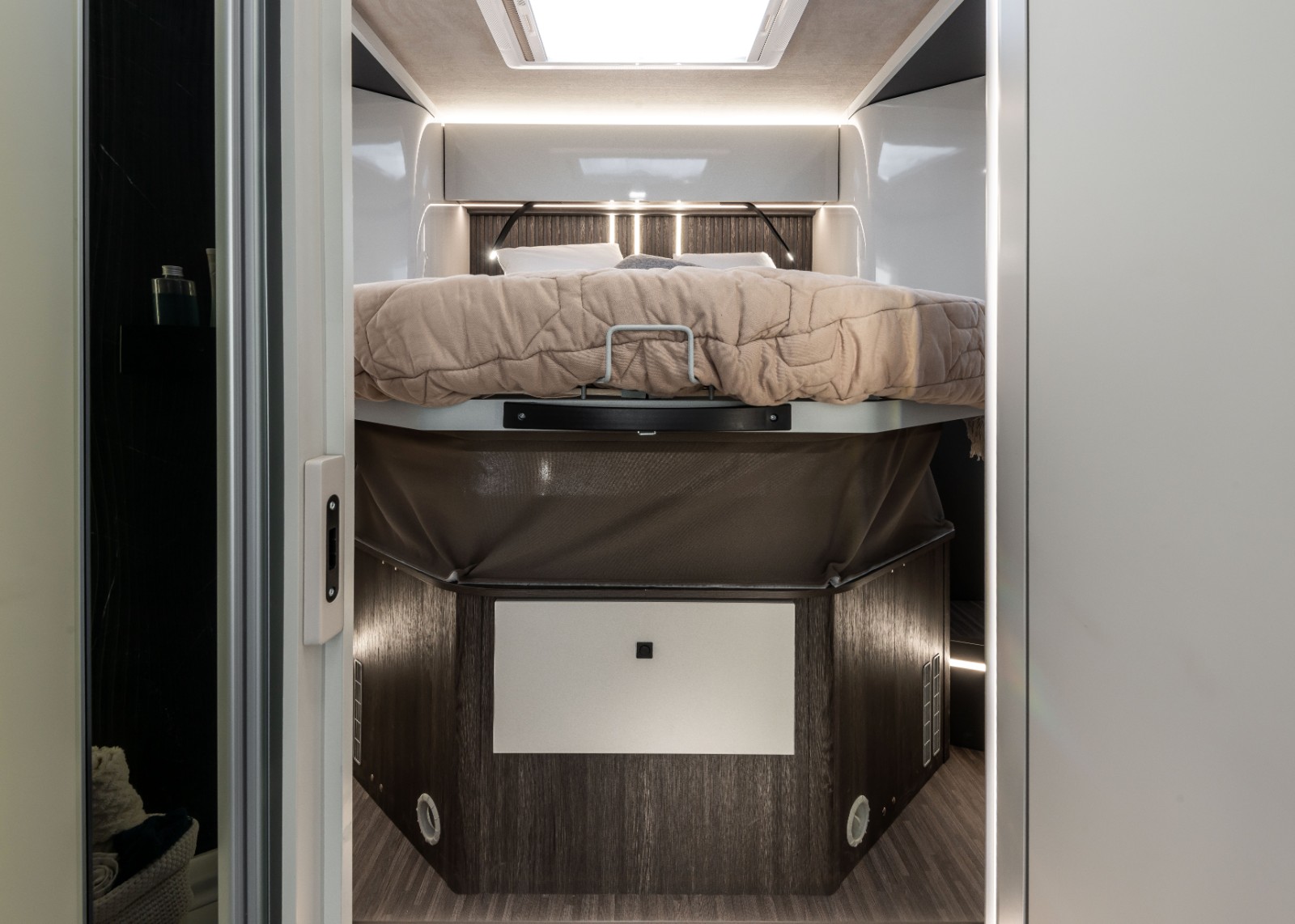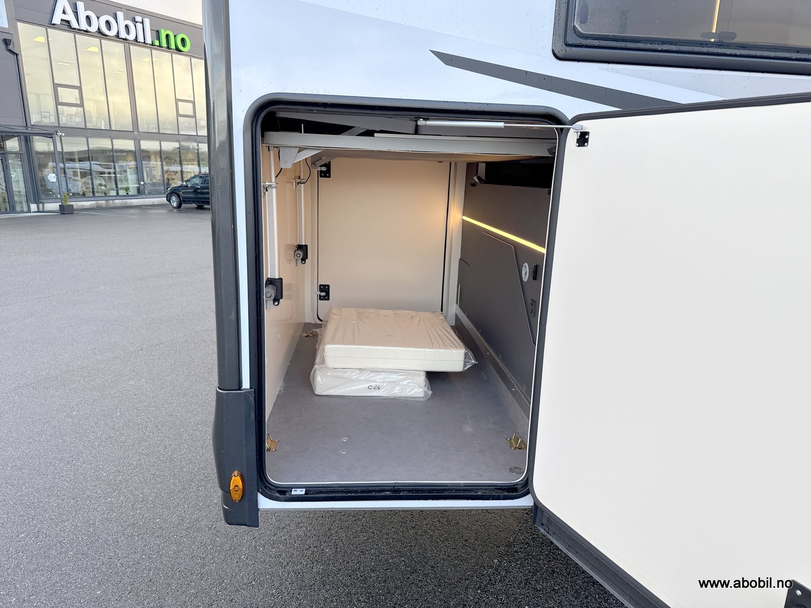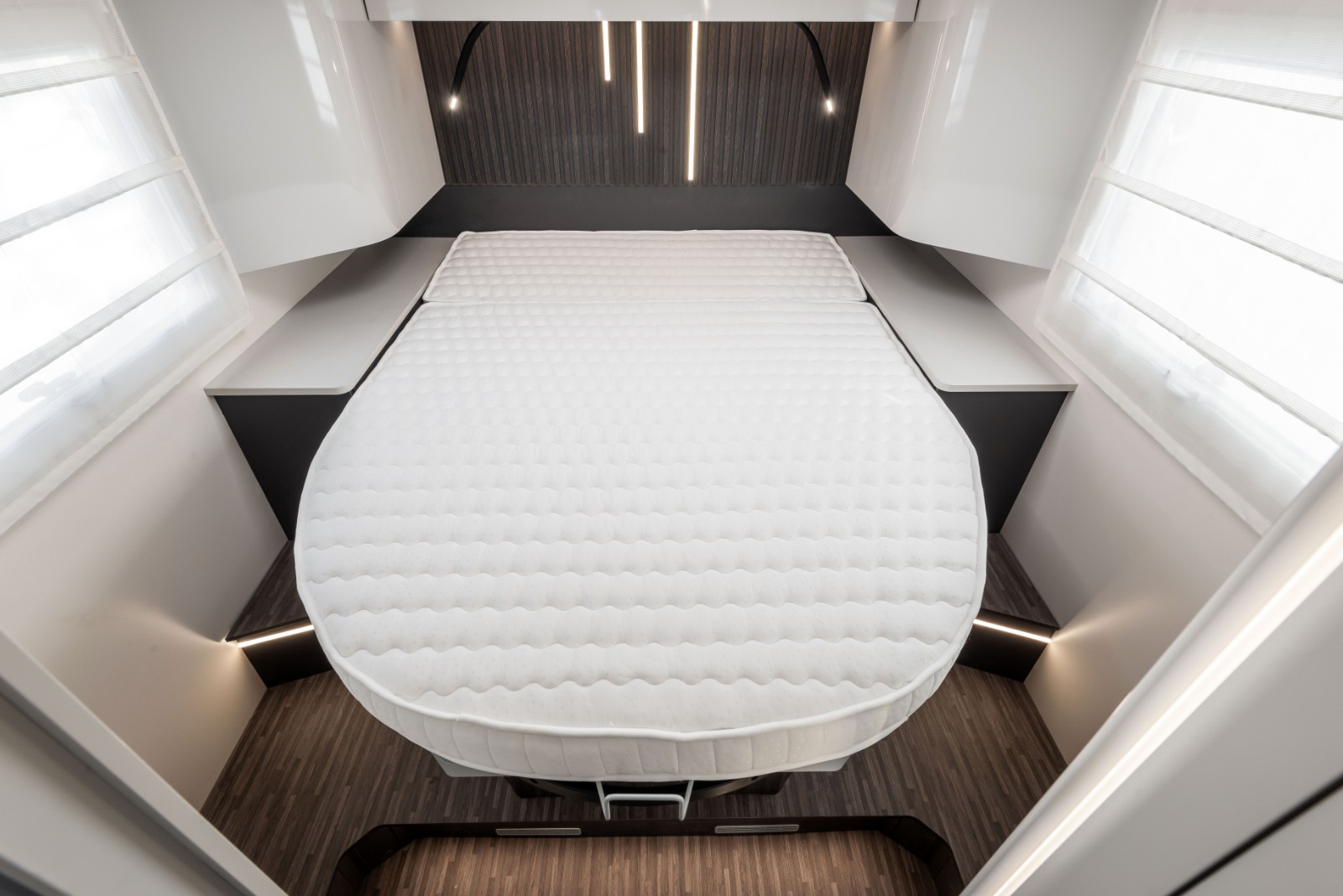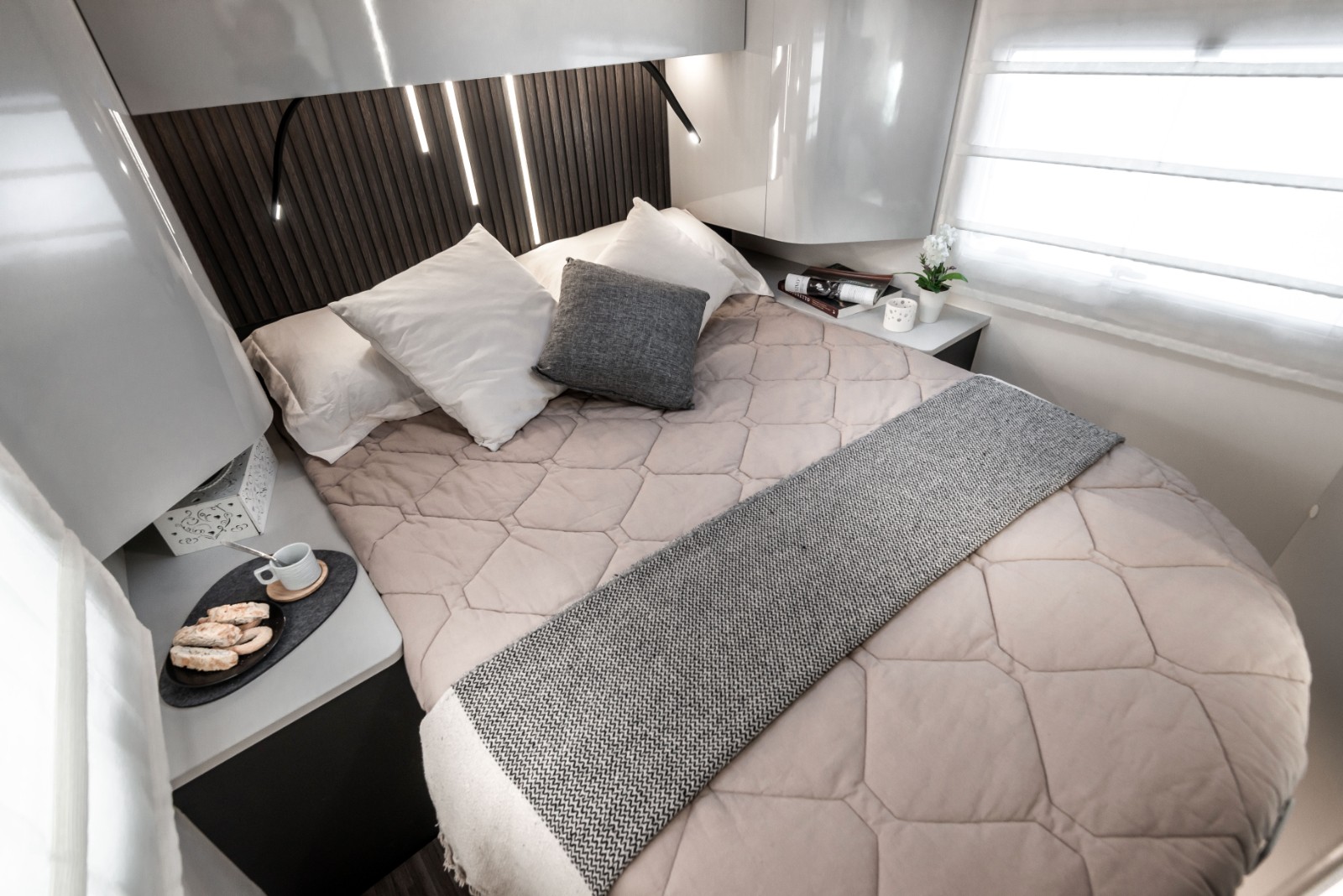 Bobilen har store vinduer, flere takluker og panoramatak gir maksimalt dagslys og høy bokomfort i et moderne miljø.