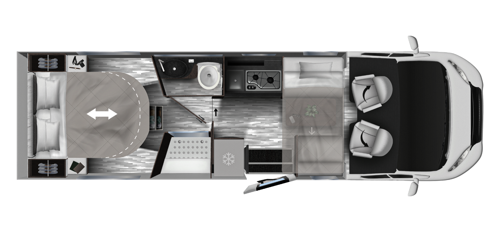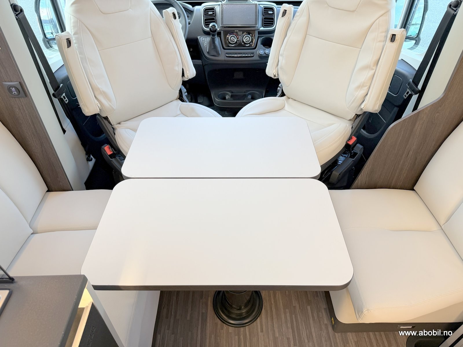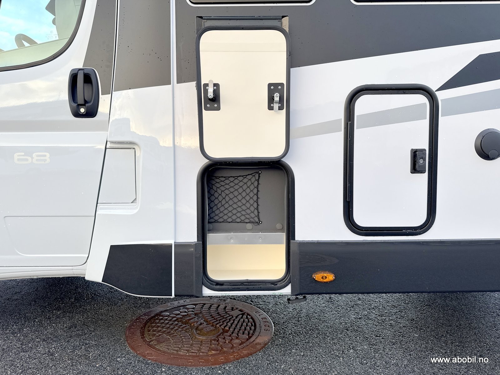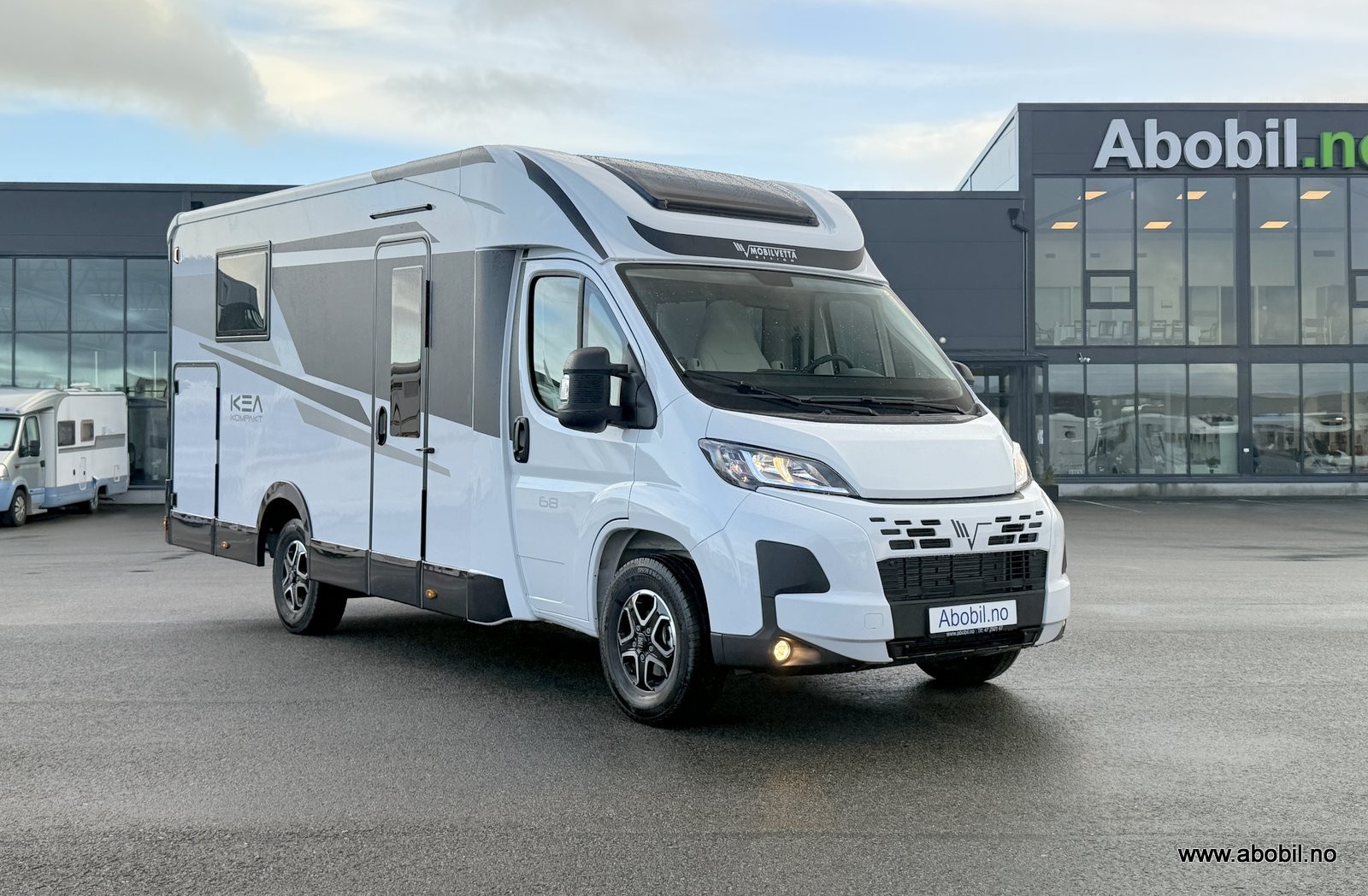 Vi har fått en stilig KEA kompakt 68 på lager. En kompakt del-integrert bobil med romslig oppholdsrom med face-to-face sittegruppe, tverrstilt baderom med separat dusj, og en midtstilt seng med skyvbar og høydejusterbar sengebunn.