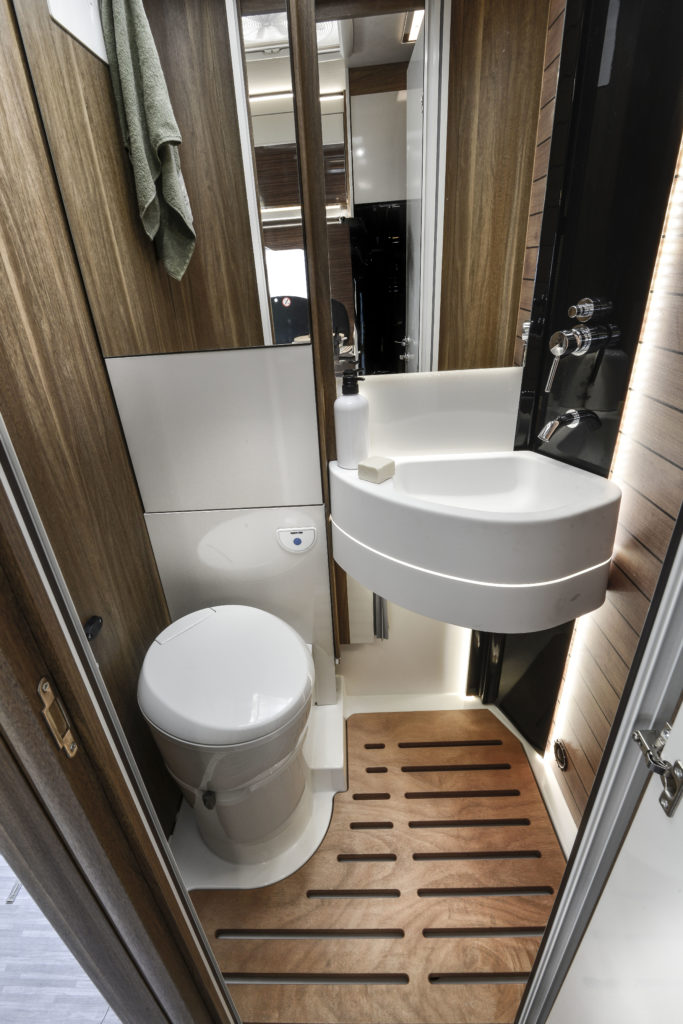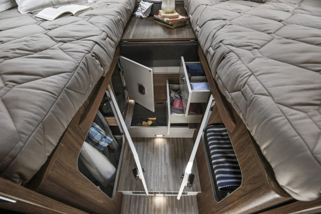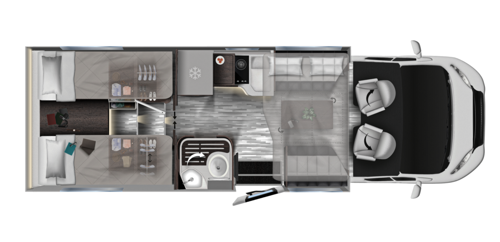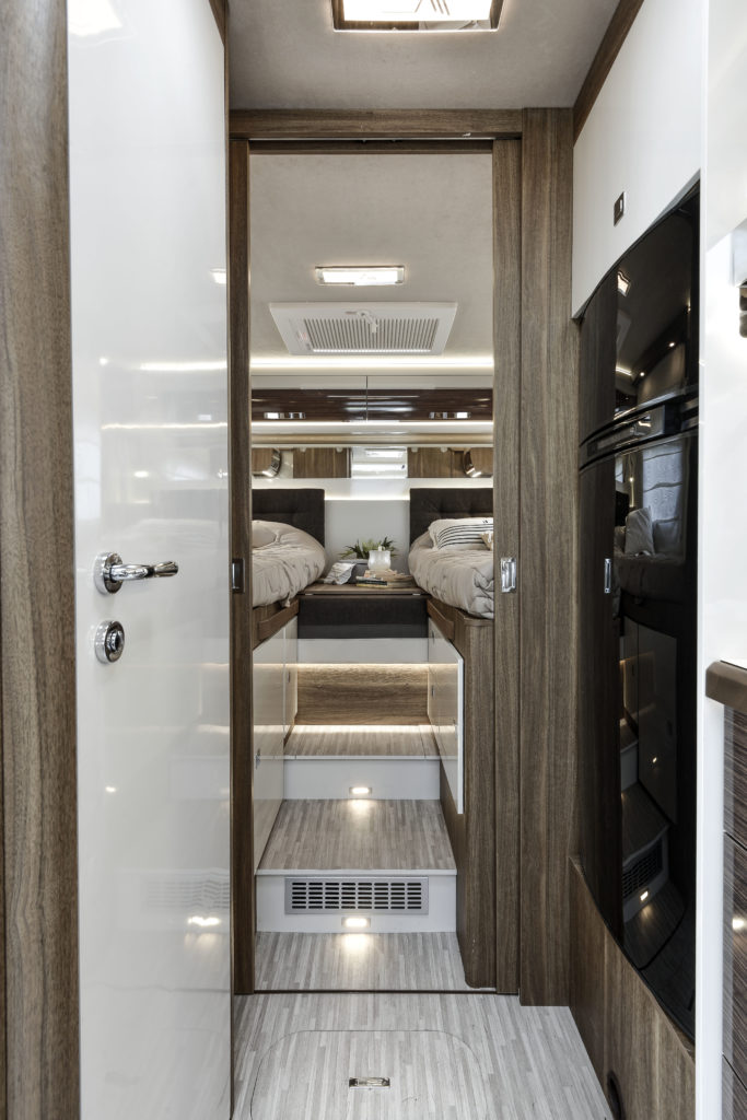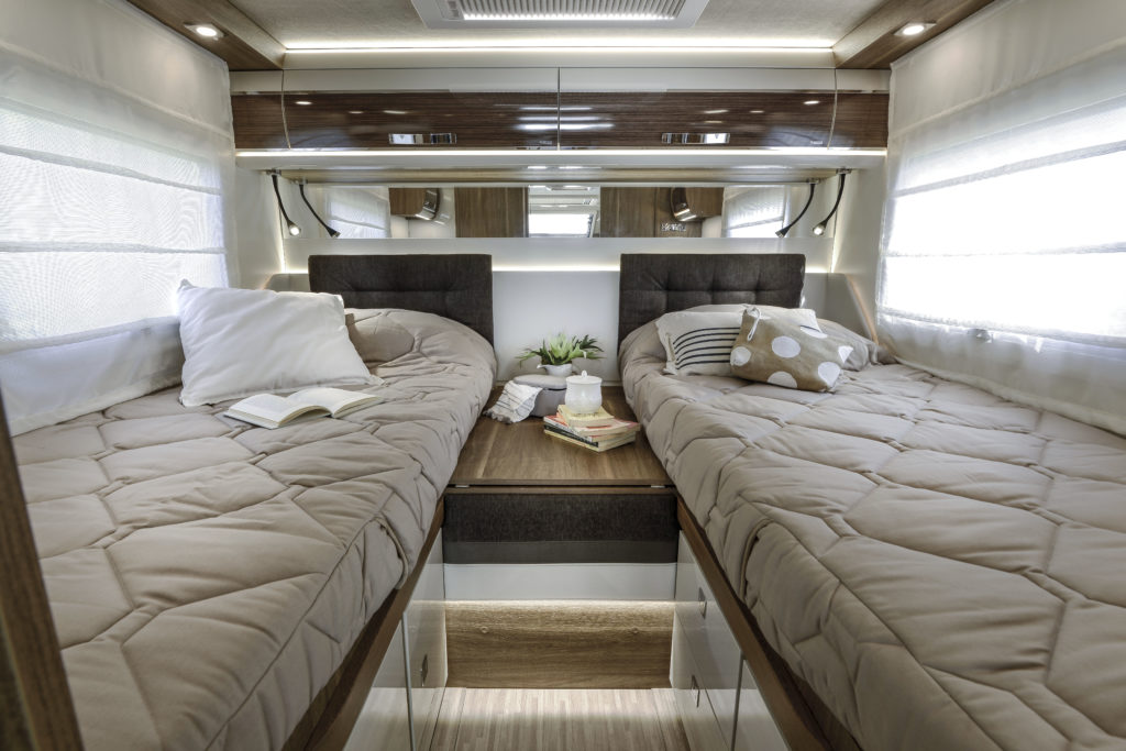 Mobilvetta Krosser 64: Del-integrert mindre enn 7 m lang, med enkeltsenger og praktisk bad.
